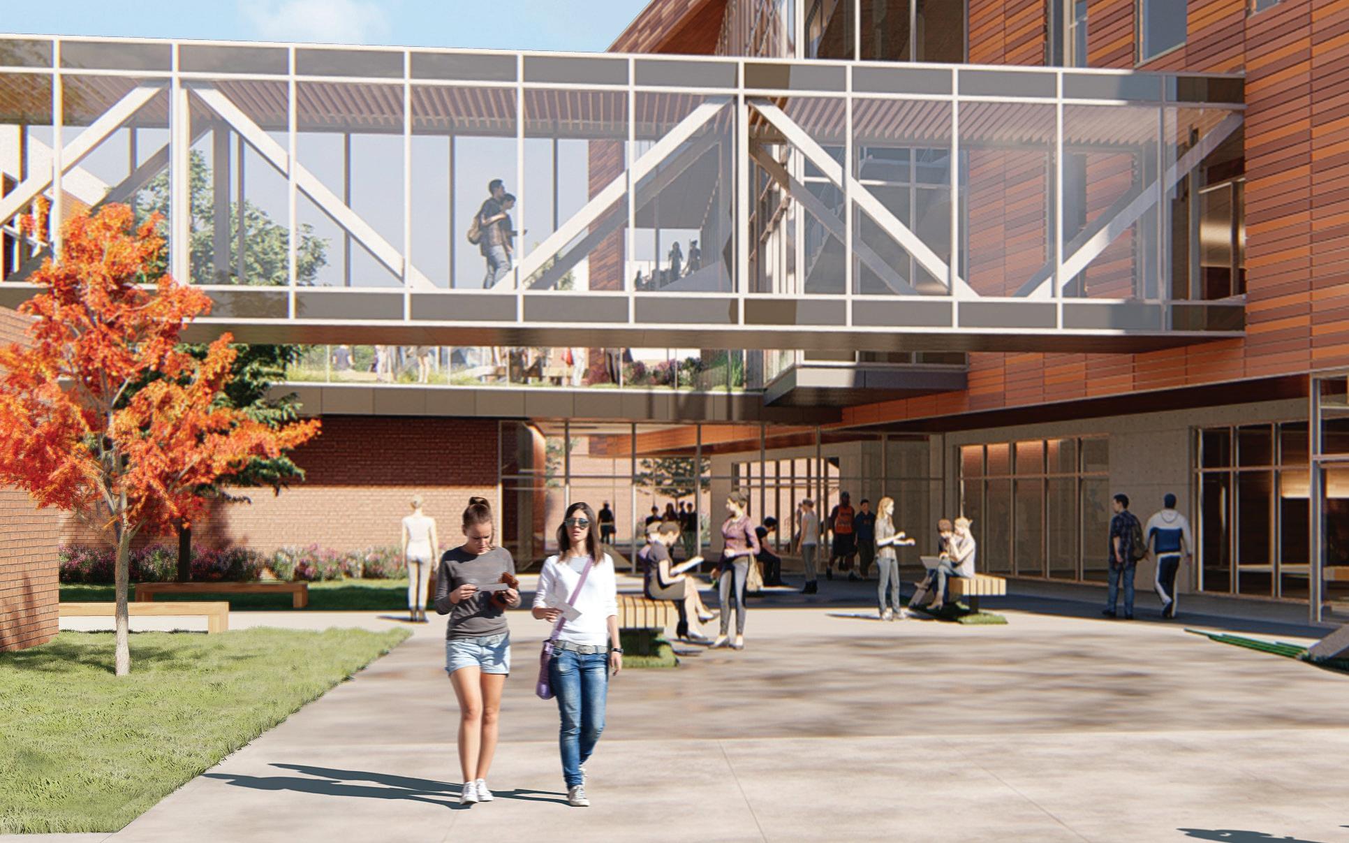 Through an iterative charrette process, our team developed the final concept for the 40,000 SF four story addition set apart from the existing Liberal Arts building with a tiered central plaza between the two. The central plaza is a place for social gathering between the two buildings while allowing more daylight into the spaces above. A series of enclosed and open-air bridges span between the existing building and addition reaching across the courtyard.