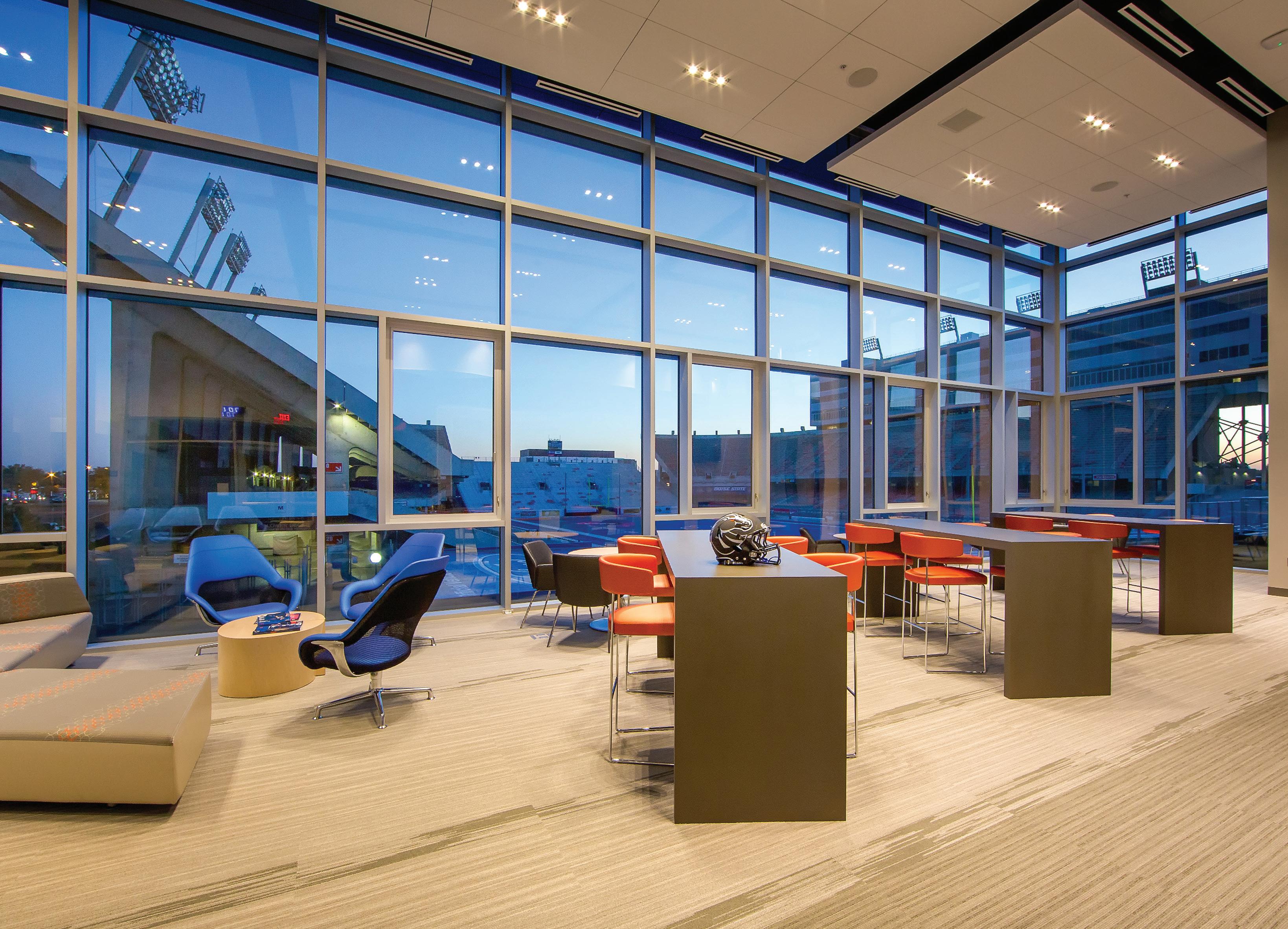The university’s brand, identity and traditions are central to the design approach. Throughout the project, we assisted the client with prioritizing their program to keep in alignment with their budget, while meeting the project expectations. The design goals for the facility included providing interaction for coaches and players, capturing views into the stadium, designing a facility that would support recruiting, while delivering the project on time and within budget.