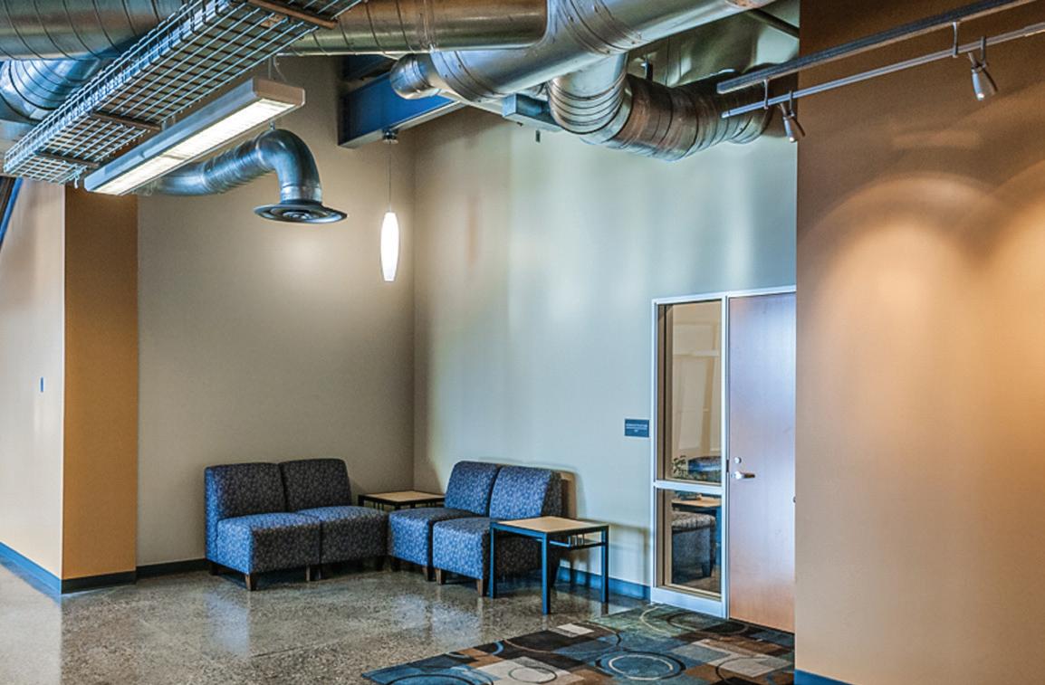 In designing a space specifically for Health Sciences, Hummel worked with stakeholders during programming to meet the specific needs of the building occupants. For instance, to support the EMT program, a classroom was designed that can accommodate an ambulance to be driven directly into the learning space for hands-on learning.