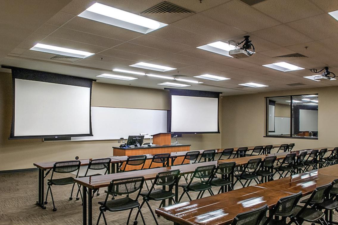 Both of these classrooms provide students the opportunity for conventional lecture-based learning, sales skill development, personal branding improvement, and the creation, rehearsal, and training for sales presentations, interviews, and proposals.