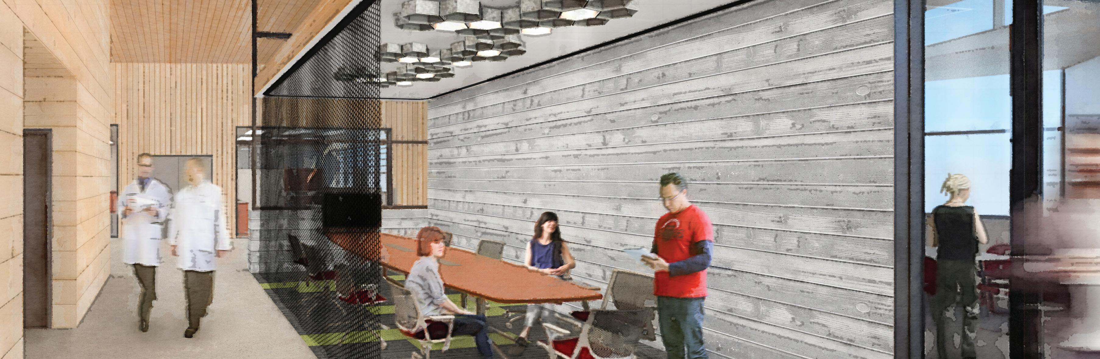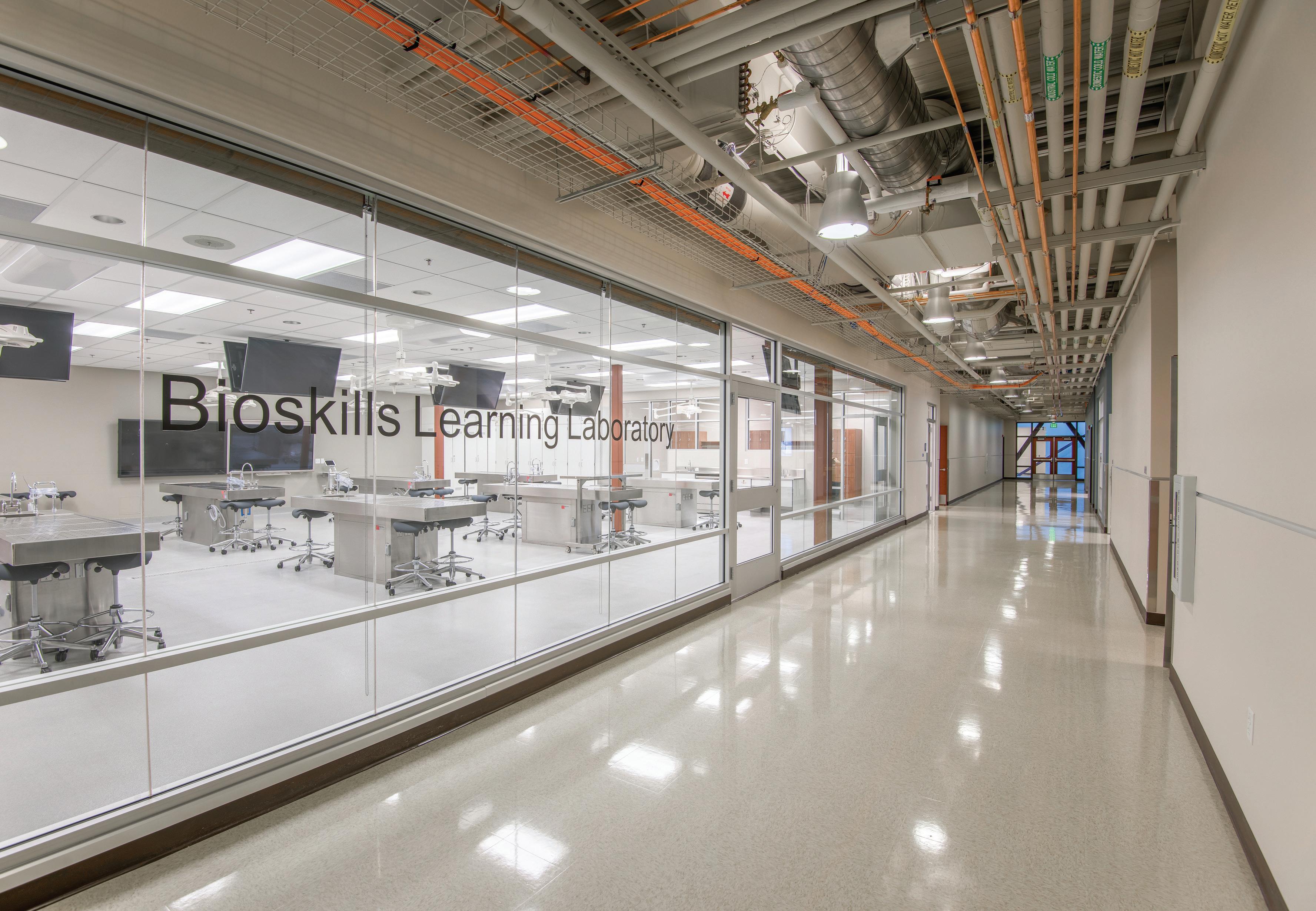 The design for the facility was to keep the laboratory spaces transparent, utilizing glass and clear sight lines into the prep and teaching spaces. This new facility introduced innovative technology for distance learning, online broadcasting, as well as teaching and learning environments.