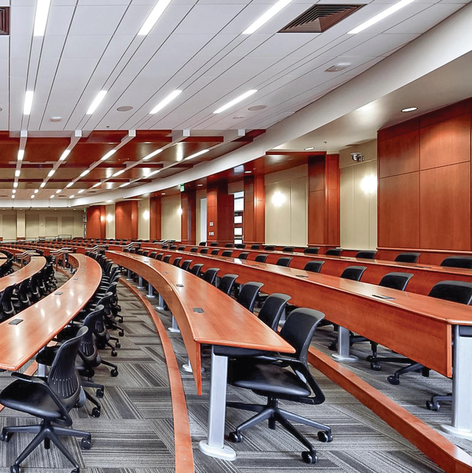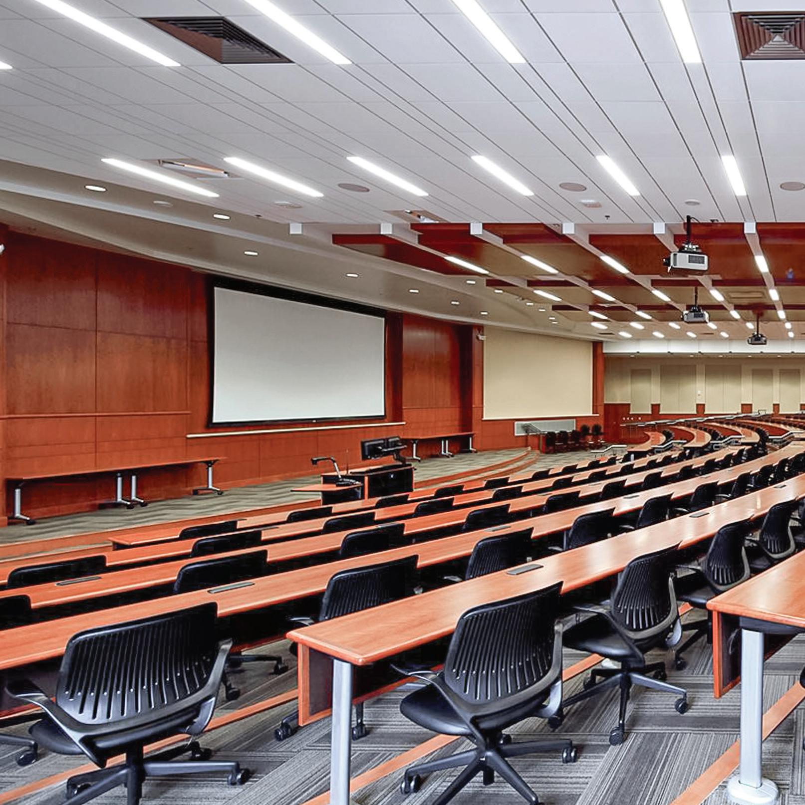 Traditional classrooms remain a cornerstone of the higher education student experience. Hummel adopts a contemporary approach that closely aligns with each institution’s specific design standards and teaching methods when designing these classrooms for university settings. With careful planning, we maximize space utilization, integrate advanced technology, and deliver real-world learning opportunities for students.