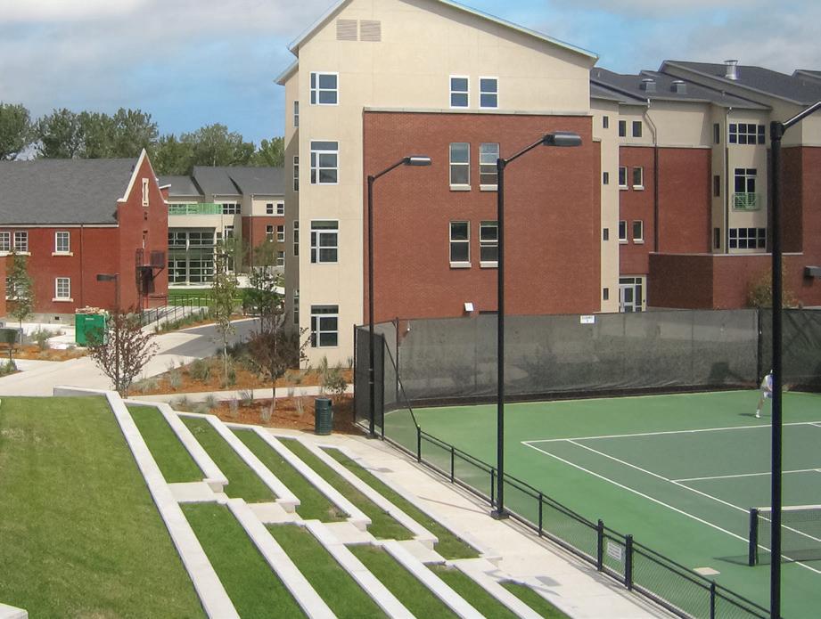 Housing is provided in a living/learning community with greater privacy than traditional dormitory rooms with amenities such as living rooms and semi-private bathrooms. In addition to the student suites, the project includes a 2-bedroom staff apartment, computer labs, laundry facilities, group kitchen, and lounge study spaces.