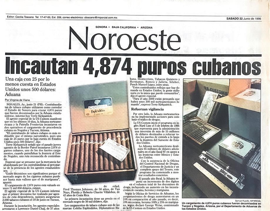 The news of the seizure occupied the eight-column headline in the regional section of the Mexican newspaper El Imparcial in 1996.