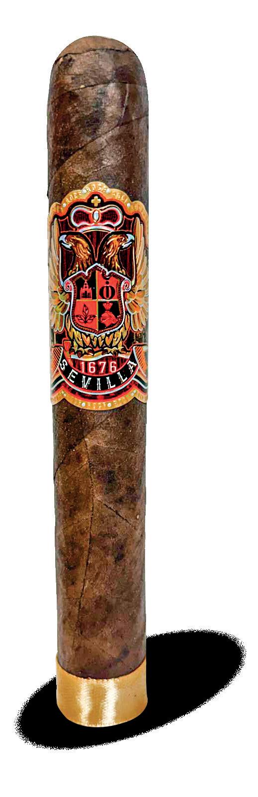 At first glance, the Sevilla 1676 by B.A.M.F Cigars is simply a 6-inch, 58ring gauge Gran Toro, decorated with a very elegant band crafted from five layers of gold leaf. But beneath that exquisite detail lies an important chapter in the history of tobacco.