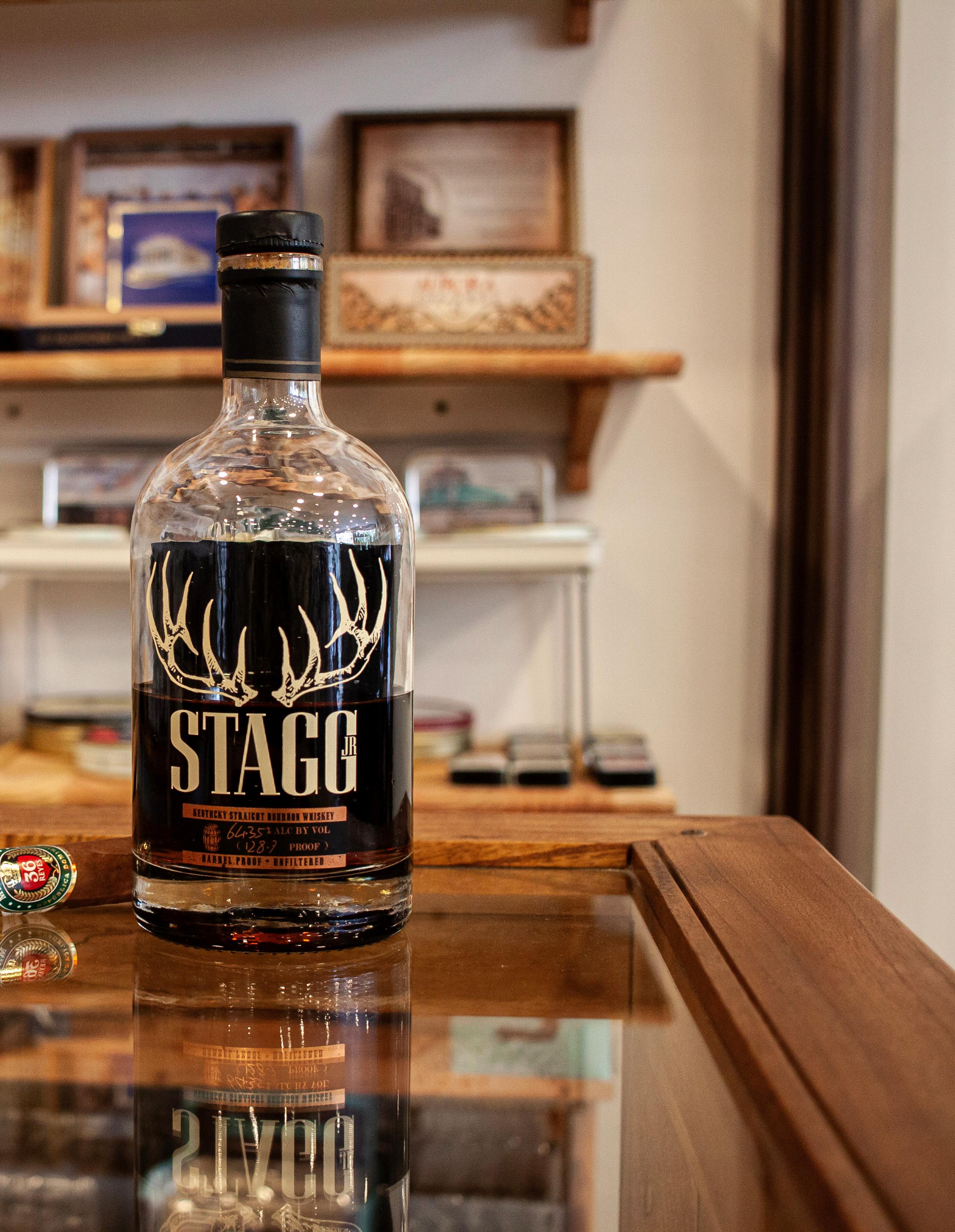 George T. Stagg is a bourbon on the top five lists for many enthusiasts and is part of the annual release of the Buffalo Trace Antique Collection (BTAC). Stagg Jr. appeared in 2013 and has continued with small batches at varying alcohol levels, always under the concept of Cask Strength. With the most recent release, Batch number 18, the designation “Jr” has been removed from the label, now simply called Stagg.