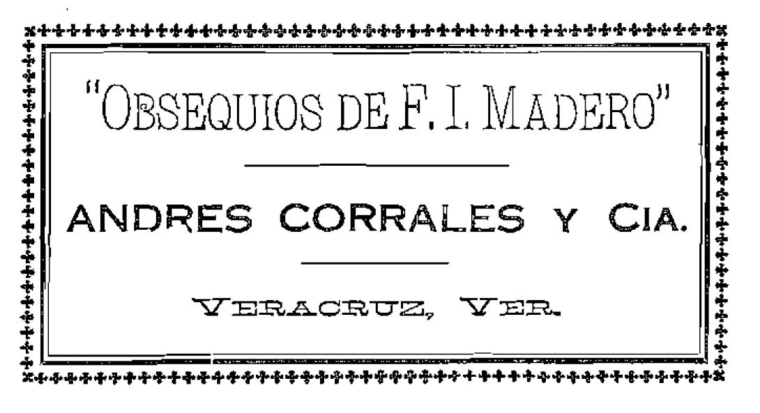 Los certificados 11,242 y 11,243 de la Oficina de Patentes y Marcas reservaron el 18 de mayo de 1911 las denominaciones o leyendas "Victorias de F. I. Madero" y "Obsequios de F. I. Madero" –solas, o unidas a otras palabras–, en favor de Andrés Corrales y Cía., como marcas de fábrica para distinguir toda clase de tabacos labrados, especialmente puros.