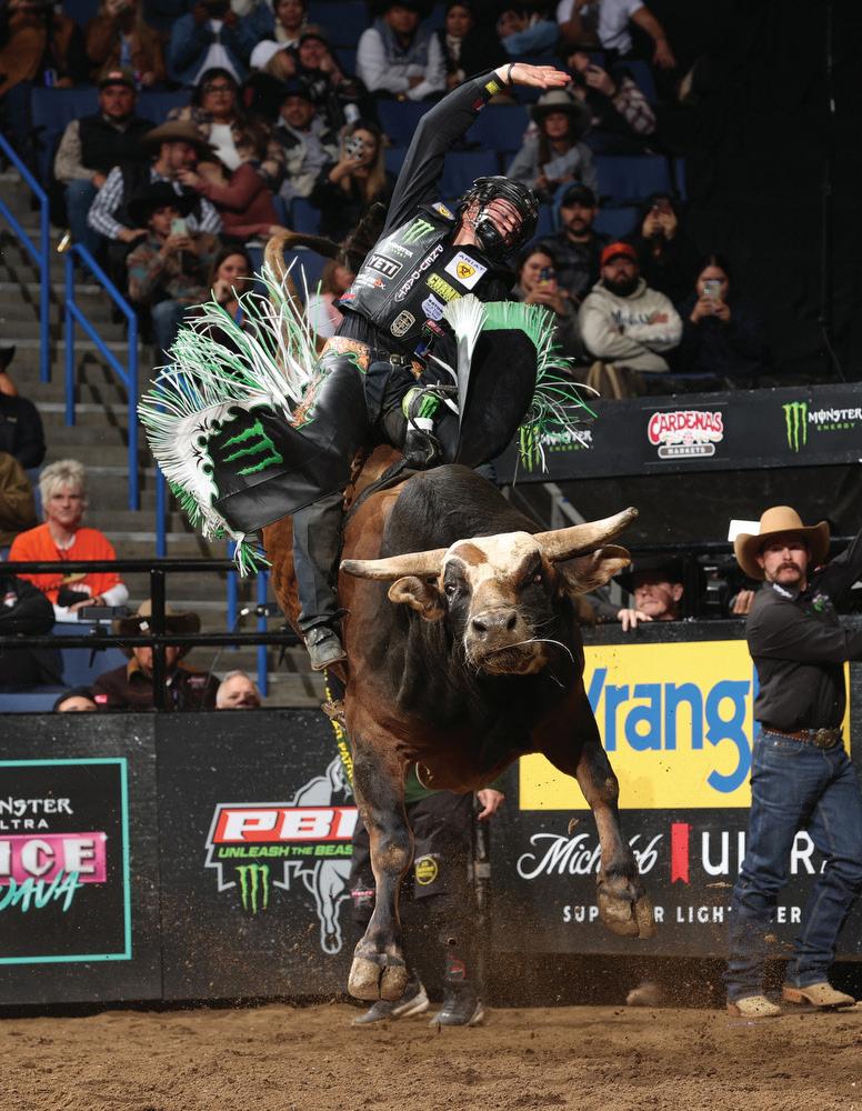 After a tumultuous season with the Missouri Thunder during PBR Teams, Alvidrez started the individual season by going 1-for-2 in Tucson. He began the second UTB weekend by besting No Man’s Land for 85.25 points on Saturday night, knowing he had ground to gain in entering Sunday at No. 11 on the event leaderboard.