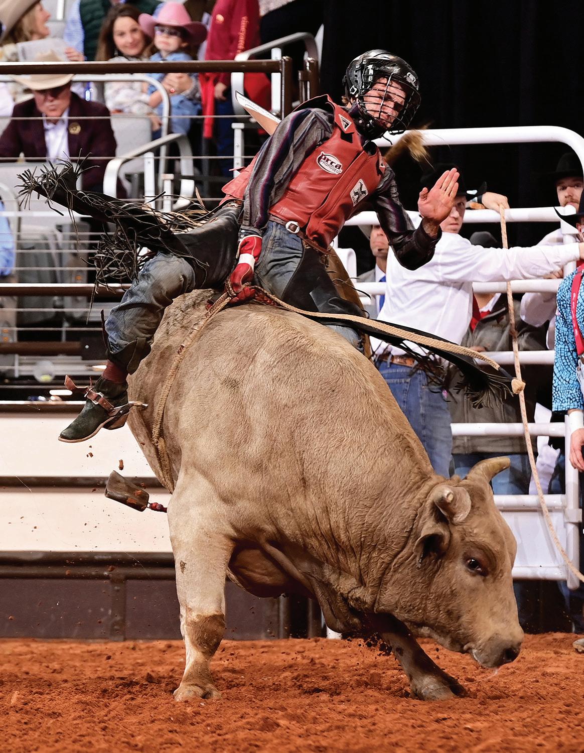 I talked with Rhett about Smokestack, and I asked why he sold him. “Well, it was a tough decision,” Rhett revealed. “But Blake was very persistent. I knew that Smokestack was the runnerup PRCA Bull of the Year last year. And this year he won over Cord McCoy’s Ridin’ Solo, who is the reigning PBR Champion bull. I knew that Blake bucks his bulls in the PBR, and I wanted to see how good Smokestack really is. It will also give me good advertisement for my breeding program.”