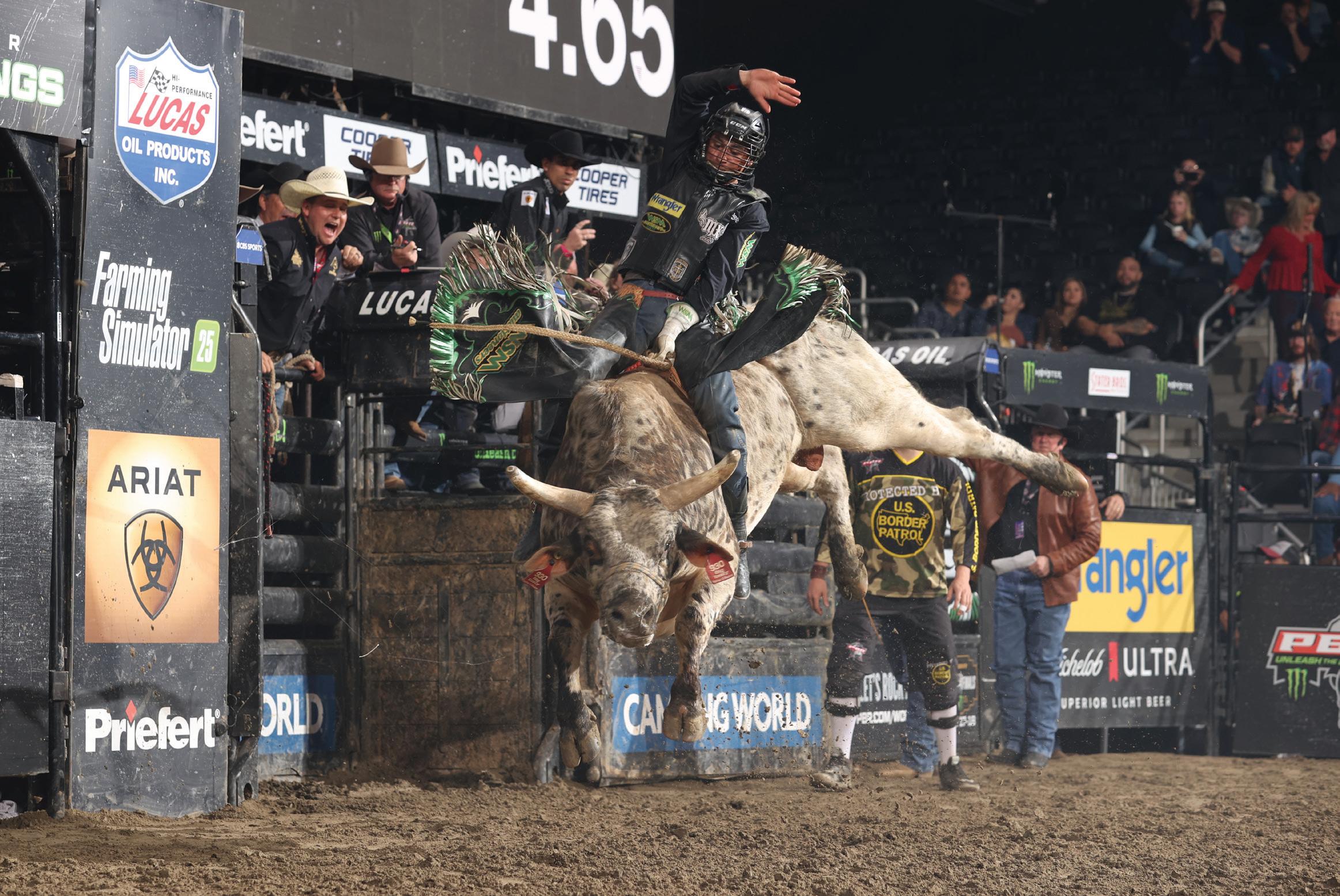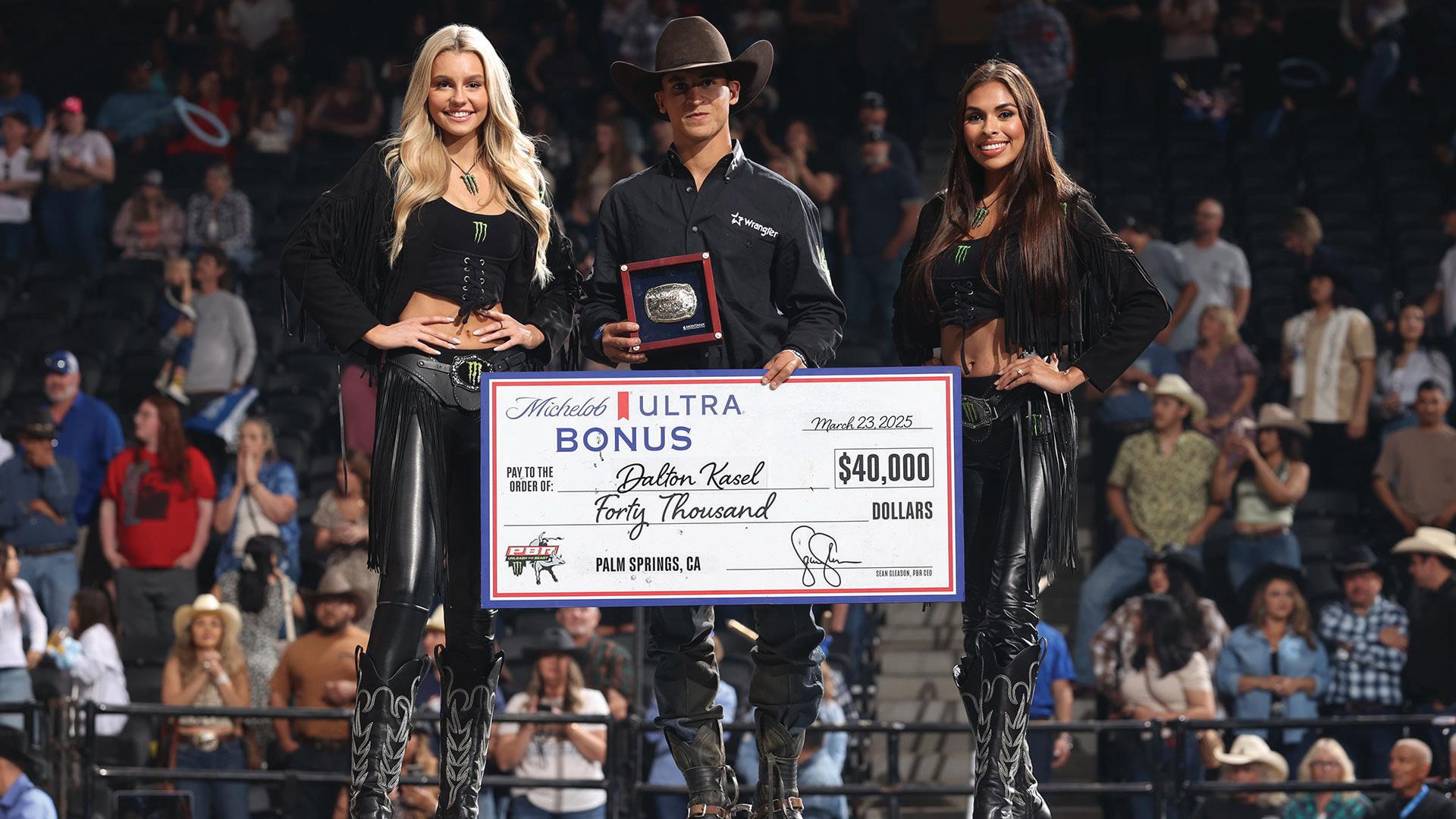 PALM SPRINGS, Calif. – Dalton Kasel (Muleshoe, Texas) delivered a perfect 4-for-4 performance on Sunday afternoon inside Acrisure Arena in Palm Springs, California, to win his third consecutive PBR (Professional Bull Riders) Unleash The Beast event at the Wrangler PBR Greater Palm Springs.