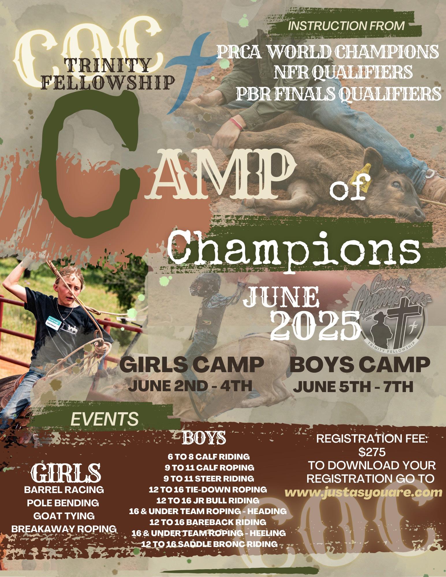 To register head over to www.justasyouare.com, and go to the “Camp of Champions” tab to download your forms, then mail the forms and your deposit to PO BOX 452 Sayre, OK 73662!