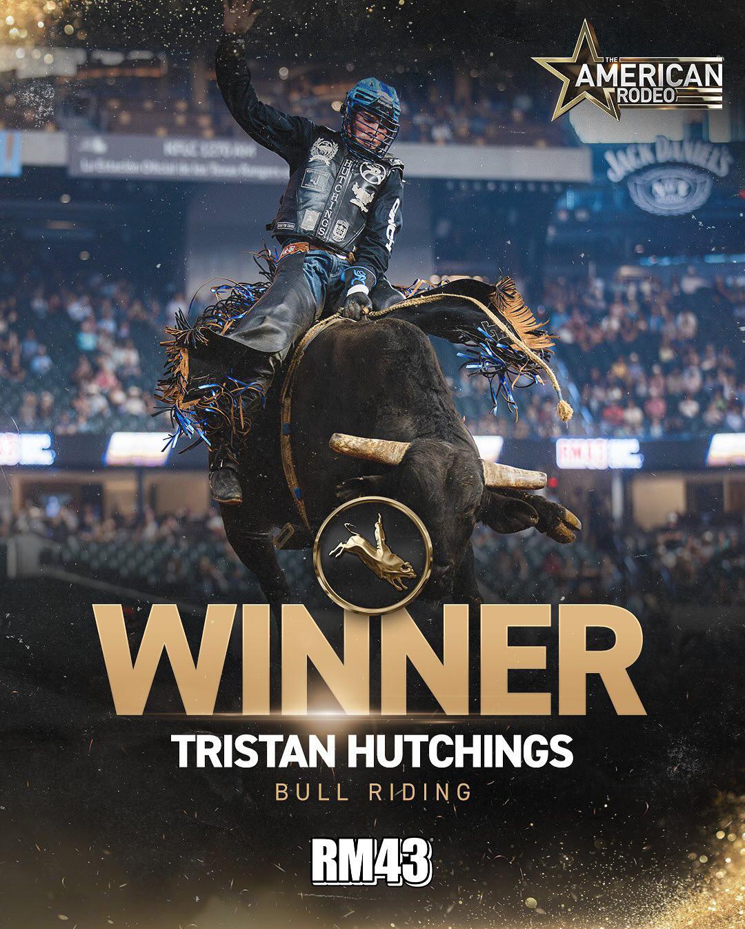 As the only cowboy to ride for the eight in the championship round, Hutchings bested them all with an 89.25 point ride to earn himself The American Rodeo championship buckle.
