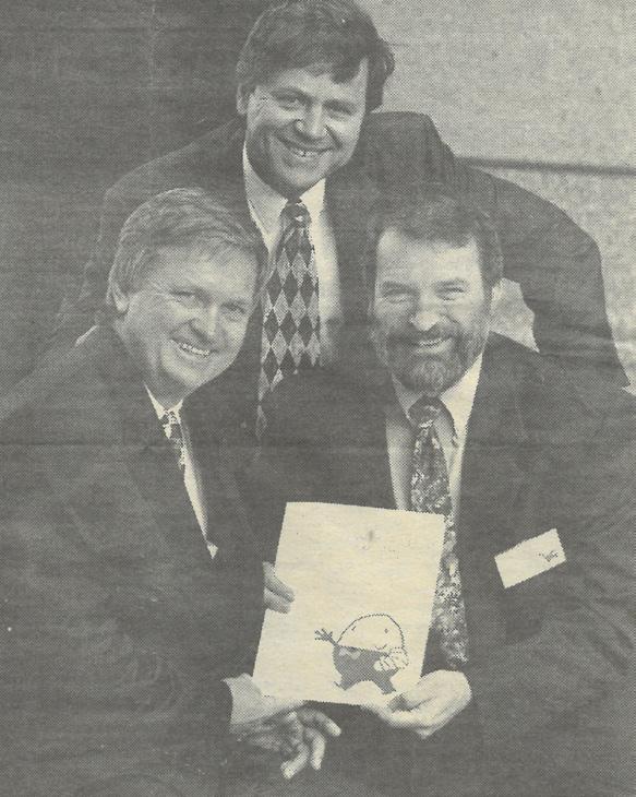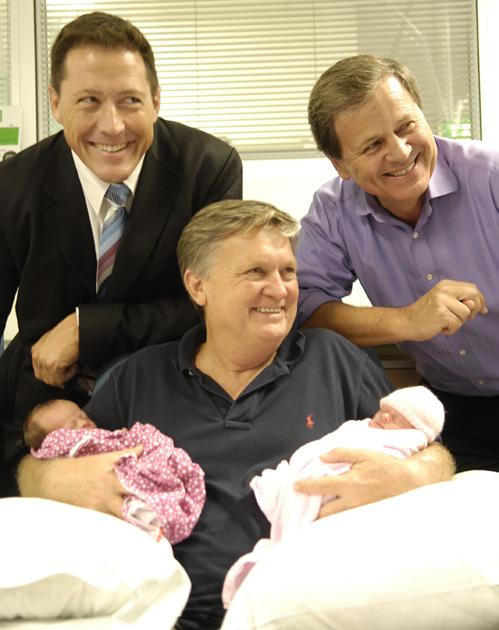 Phil Kearns, Paul Francis, and Ray Martin, share a special moment with Paul’s newborn daughters