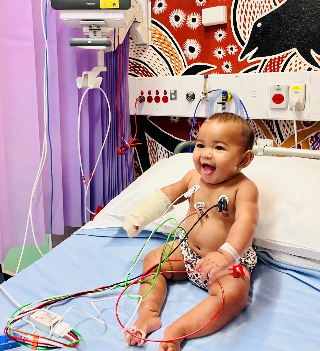 Baby at Gove Hospital in the Northern Territory being helped with equipment donated by Glencore MRM