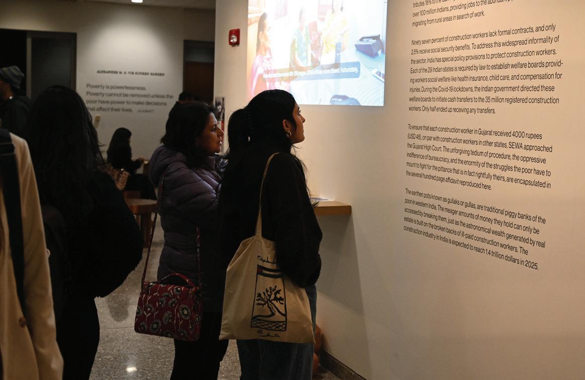 In order to communicate our findings to a wide array of domestic and global audiences, an interdisciplinary team of students from medicine, public health, design, government and computer science, developed a multimedia exhibition combining artifacts from the lives of the workers, oral history videos, data visualizations from the research findings, and a stunning multi-screen display capturing the salience of digital devices in sustaining health, education and wages. This exhibit was first hosted at the Center for Government and International Studies at Harvard, and supported by the O ce of the Provost, and the Lakshmi Mittal and Family South Asia Institute at Harvard. It then began its tour, Jatra, or journey, with its next stop at the Clinton Global Initiative’s annual meeting in New York in September 2024.