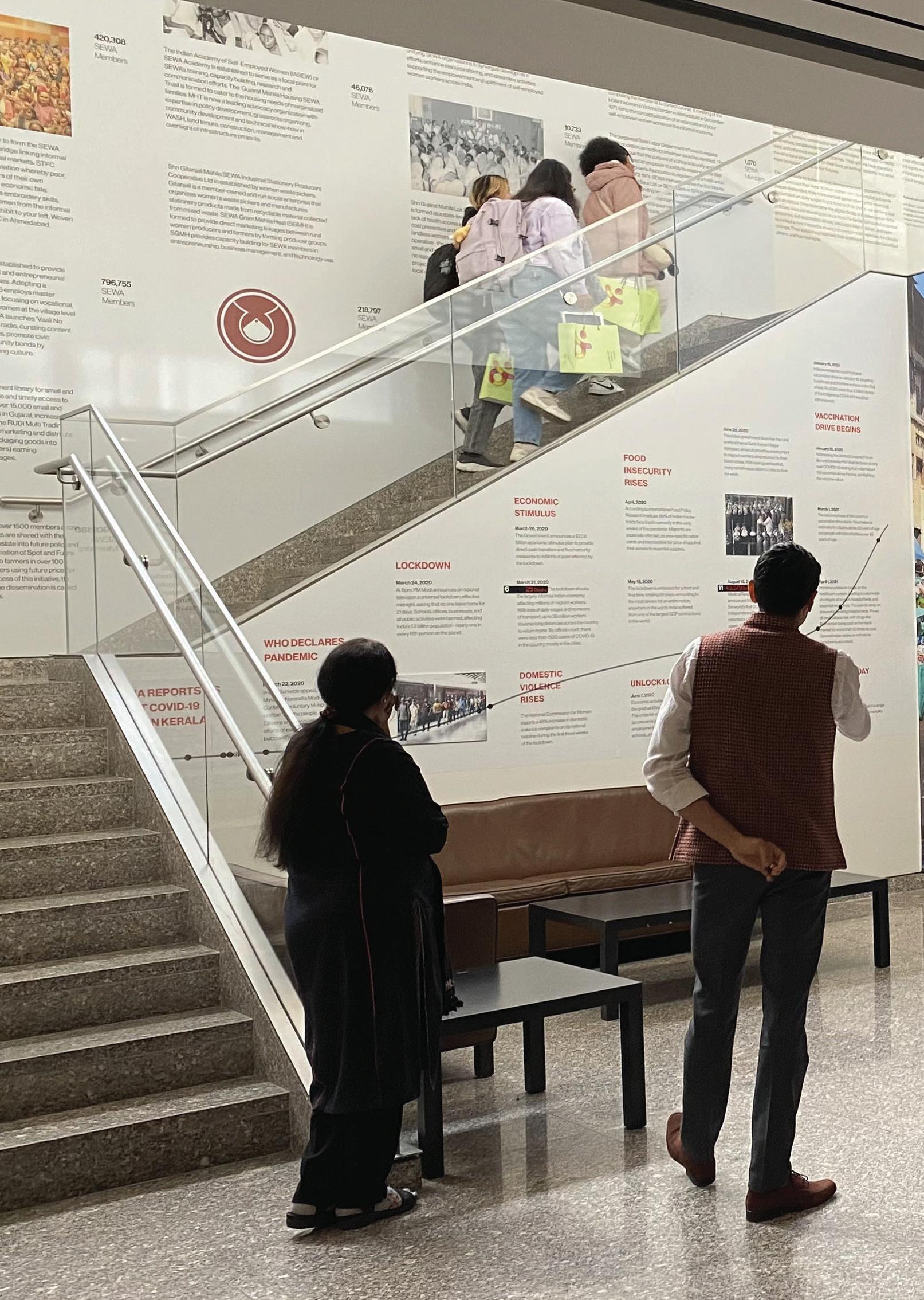 Additional Features: A floor mounted literature holder to display SEWA’s timeline booklets.