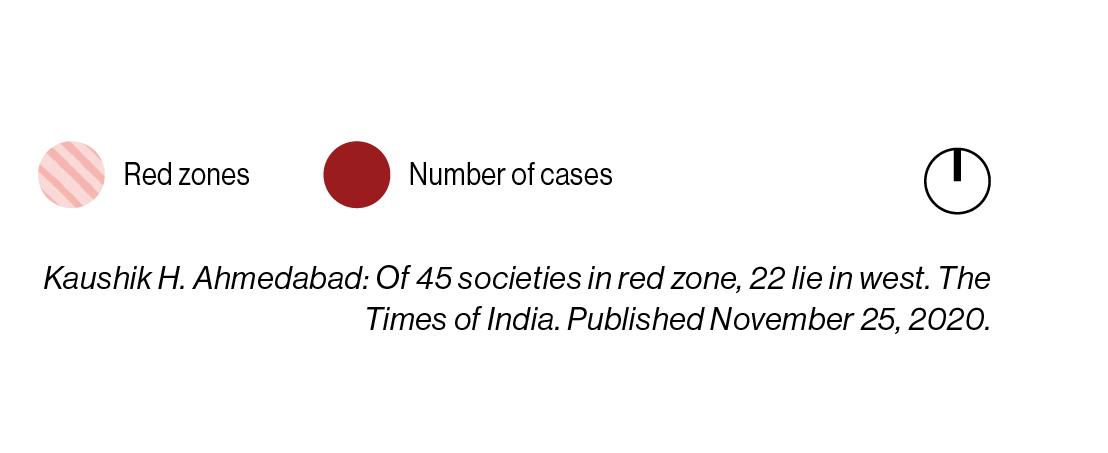 A map representing localities marked as Red-Zones, in Ahemedabad.