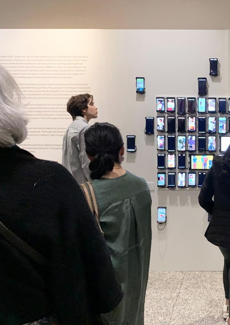 Media: A multimedia installation with 70 devices and a data visualization of the spike in cellular subscriptions in India during the Pandemic.
