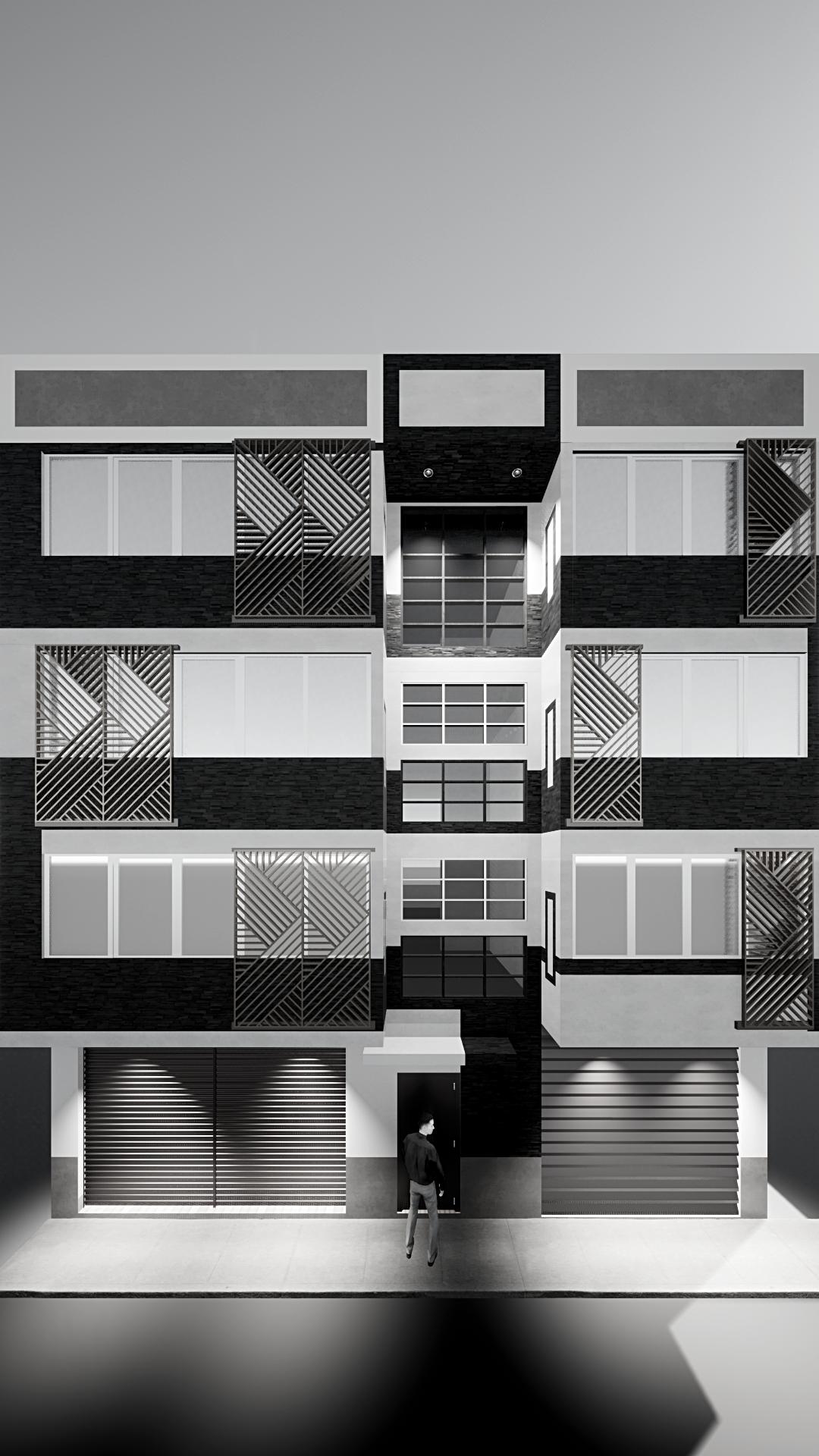 La fachada parte de un inicio a un fin llevando la linea principal del primer piso al ultimo piso , las ventanas están cubiertas de pieles lo cual permite el acceso de luz necesario para los espacios.