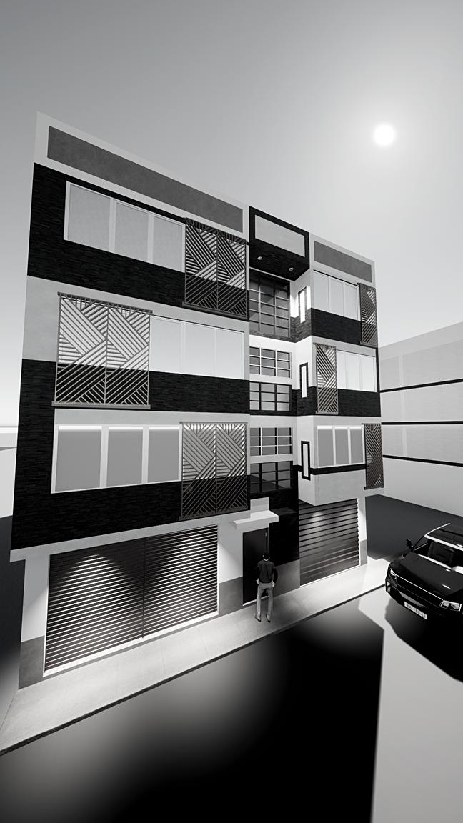 Los rectángulos con marcos están en toda la fachada así como en los detalles centrales para darle un aspecto mas sofisticado a la perspectiva de la fachada , las pieles juegan con las sombras y dan jerarquía a la fachada