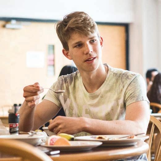 Healthy eating promotes successful learning and all-around wellness—and teenagers love food. Our dining hall serves meals cooked from scratch, using seasonal, locally sourced ingredients alongside glutenfree and vegan options. Outside of meal times, grab-and-go foods like fruit, bagels, sandwiches, and hummus with veggies are readily available. Studying in Global Commons? Stop by the PA Café for pizza, wraps, salads, chicken tenders, drinks, and dessert. You’ll never go hungry at Hun!