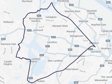 Elermore Vale (part), Georgetown, Jesmond, Hamilton North, Kotara (part), Lambton, New Lambton, New Lambton Heights, North Lambton, Rankin Park (part), Wallsend (part), Waratah and Waratah West.