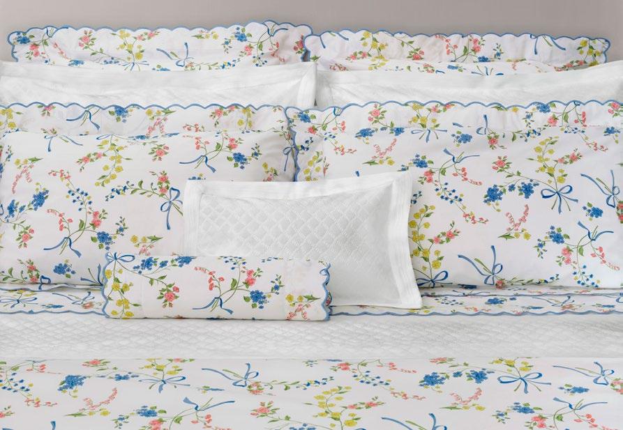 Those studies included looking at materials and construction. Sferra has retained Pratesi’s signature fabric Angel Luxe, so named for its heavenly softness, woven from rare, extra-long Egyptian-harvested cotton: “The finest in the world,” Klein says.