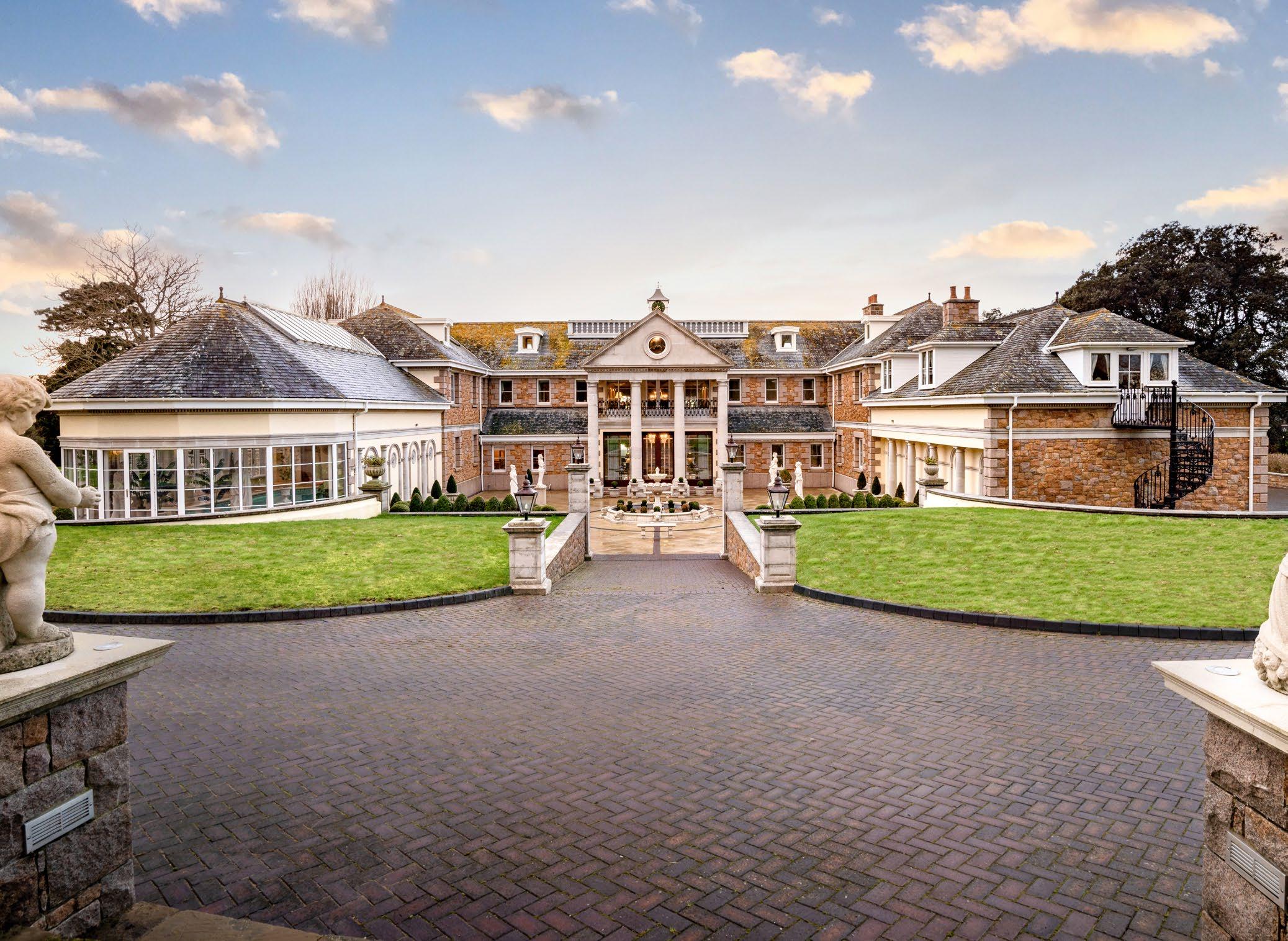 The subject of a recent renovation, it is approached by a gated entrance leading to a large, paved courtyard that is filled with established borders and offers 2 double garages and extensive parking. The fine property enjoys over 16,000 sq ft of accommodation over three floors.