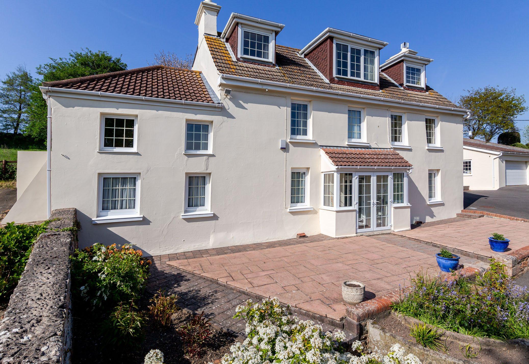 Situated in the rural parish of St John and only a short drive to amenities in St John’s Village and pubs/eateries, and the cliff walks and school, this four-bedroom home is located on a quiet lane and benefits from countryside and sea views of Jersey’s stunning north coast from most rooms.