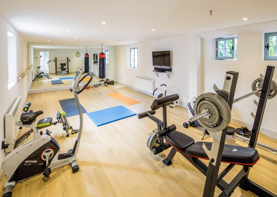 The lower floor comprises a large gym or yoga room that opens out onto the sheltered outdoor pool and BBQ area/lower garden and there is also an indoor pool with jacuzzi, sauna and changing facilities. There is also a superb wine cellar with bar, shelving and tasting table.