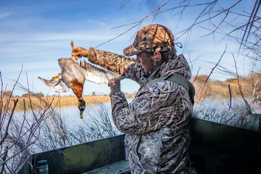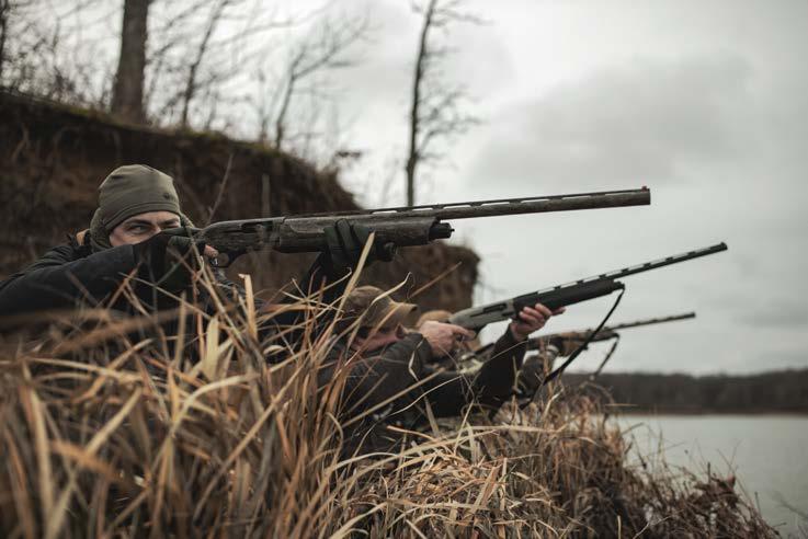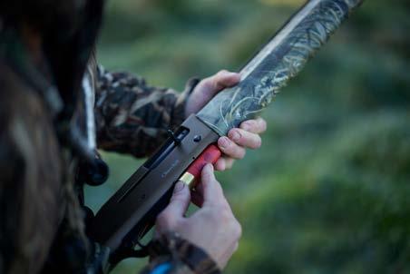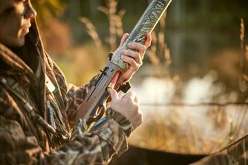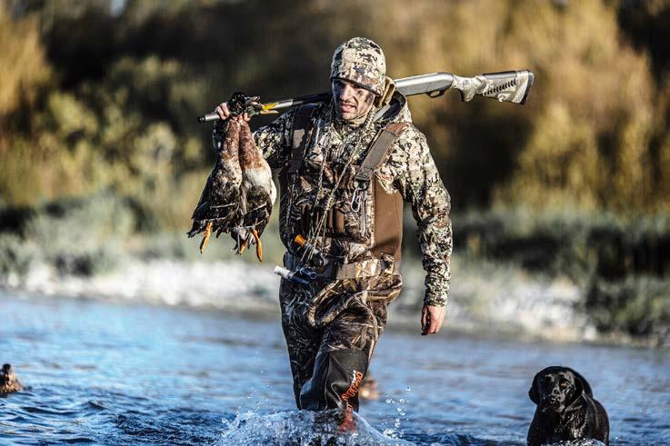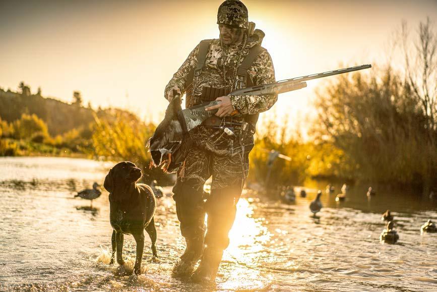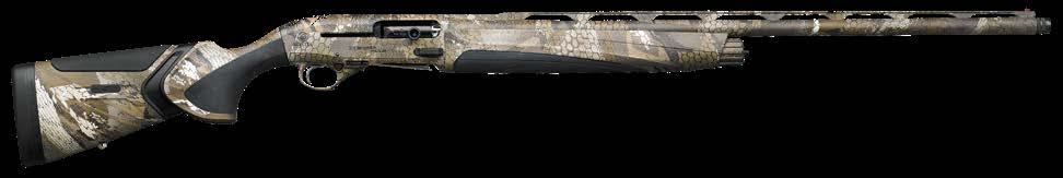 composite stock can be trimmed and shimmed for cast, drop and length of pull, the rubber over-molding on stock and forearm gives extra grip and comfort for the worst of conditions, the fiber optic front sight and ivory mid-bead give quick target acquisition, plus it comes with three extended chokes that are styled off a goose leg-band (Full, Modified & Improved Cylinder). Then there’s the Oversize Bolt Handle and Bolt Release Button and a Soft-flex cheek pad for added shooting comfort. (It’s also offered in Black Synthetic.)