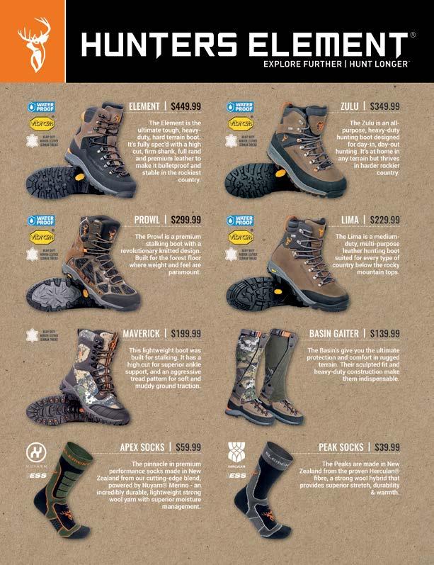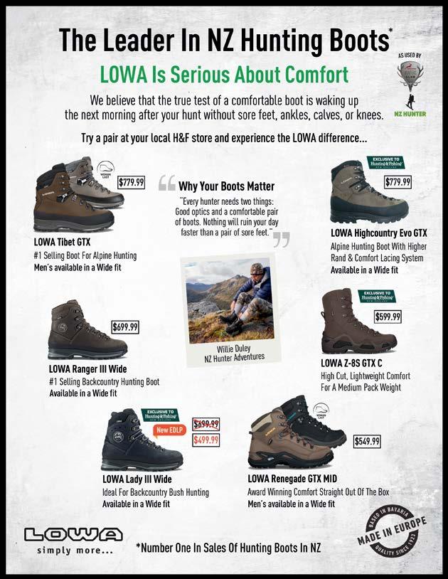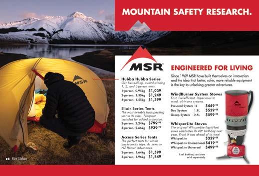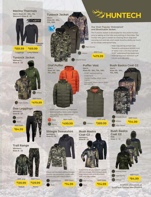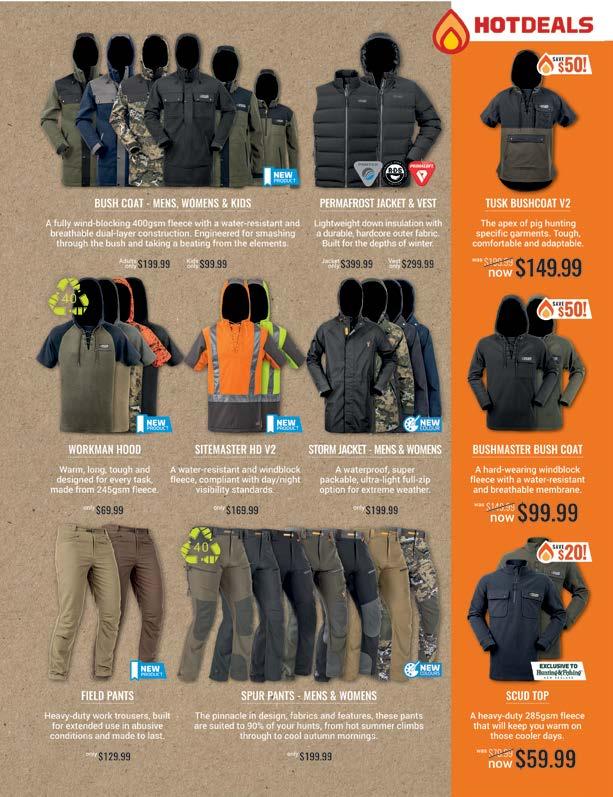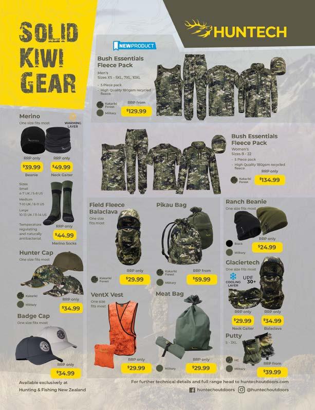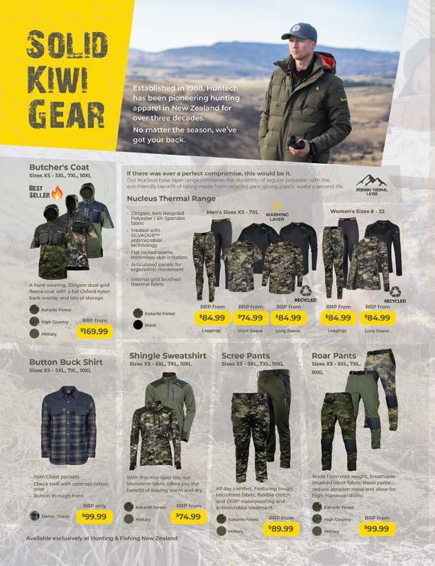The products listed in this catalogue represent what is on order at the time of printing and what we plan to have collectively available through Hunting & Fishing New Zealand® stores nationwide with reserve supplies available from our importers where possible. We have ordered what we believe will be sufficient stock to last us 2 months from the date of publication. Specials and close-out deals however are limited by stock availability. Hunting & Fishing New Zealand® will not be responsible for lack of stock through supplier problems. We strive to print correct colours and images but cannot guarantee that they will always be a 100% correct representation of the products advertised. The climatic and geographic diversity of New Zealand makes stocking everything in each store impractical, however each store does carry as full a range as is practical and financially possible. If you want something from this catalogue and it’s not available at your local store, then we will