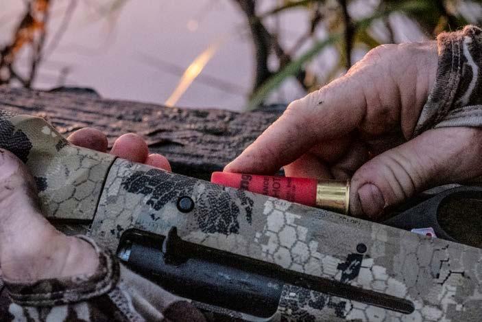 Pigeons being pigeons are tricky and not as silly as people think. Typically, the day started with them playing chicken over the decoys, fluttering at 10-15 meters. I started the morning risking light clay target loads, knowing that a brand-new gun can be a bit sticky with these but the Maxus II showed this wasn’t a problem what so-ever… the perfectly tuned Power Drive Gas System had the gun ejecting and loading like a well-oiled machine. Let me tell you, this Power Drive Gas System is SNAPPY fast and SILKY soft, and might I add, the quickest loading gas gun I have ever pulled the trigger on. The Lightening Trigger on the Maxus has the fastest lock time of any autoloader in its class. As the morning went on and the pigeons got a little cagier, I changed to using heavier lead loads for any birds further out. This was a great way to replicate the more drawn-out swinging shots you get on waterfowl and learn the realdeal feel and balance of the beast. The thing that really stood out the most to