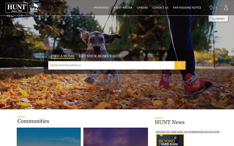 Accessible from any desktop or mobile device, our consumer-focused website features every MLS-listed property for sale. With in-depth community information, school rankings, and neighborhood videos, HUNTrealestate.com allows consumers to explore their ideal place to call home. It also offers instant access to our family of ancillary residential services - HUNT Mortgage, HUNT Insurance and Network Title Agency.