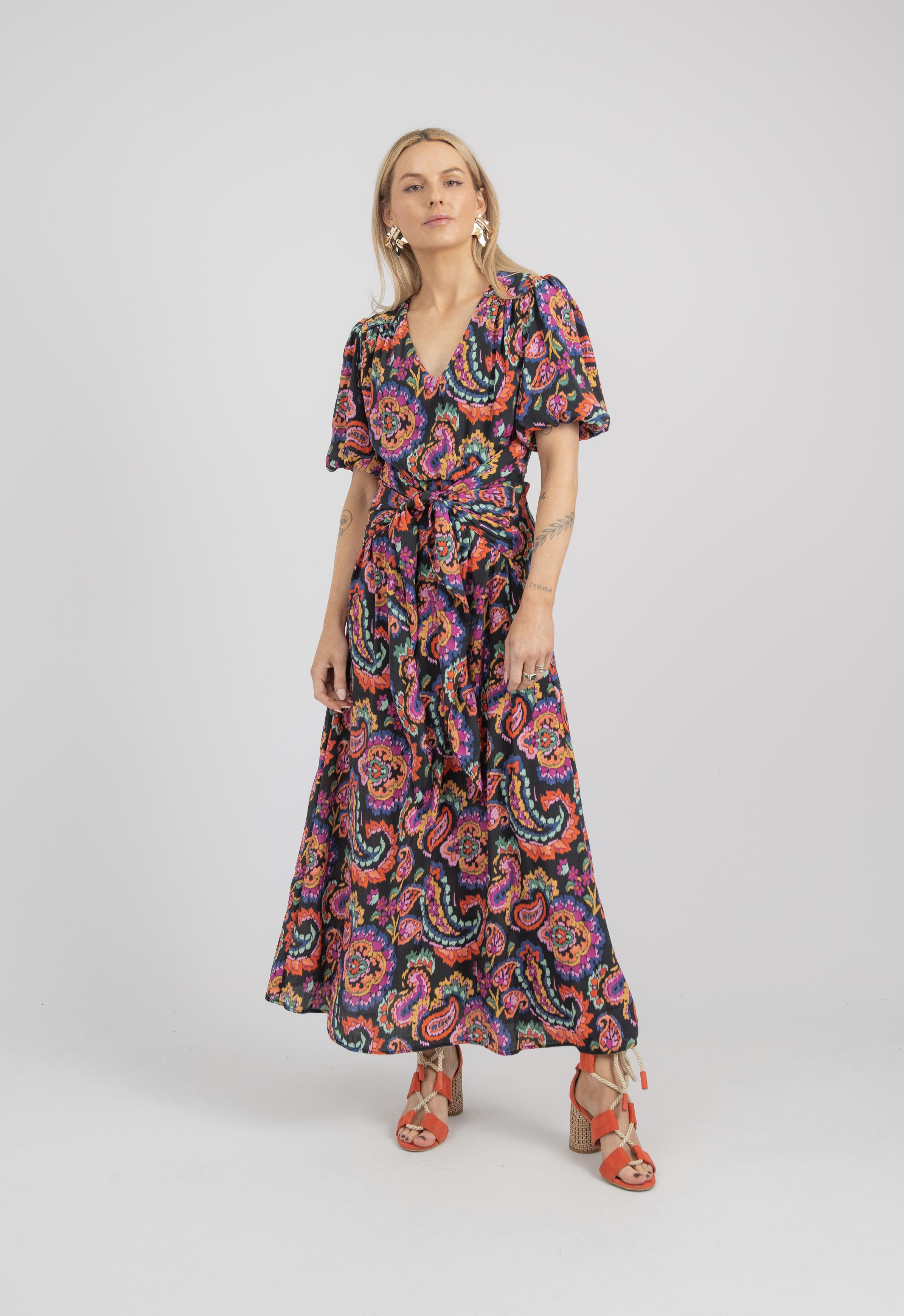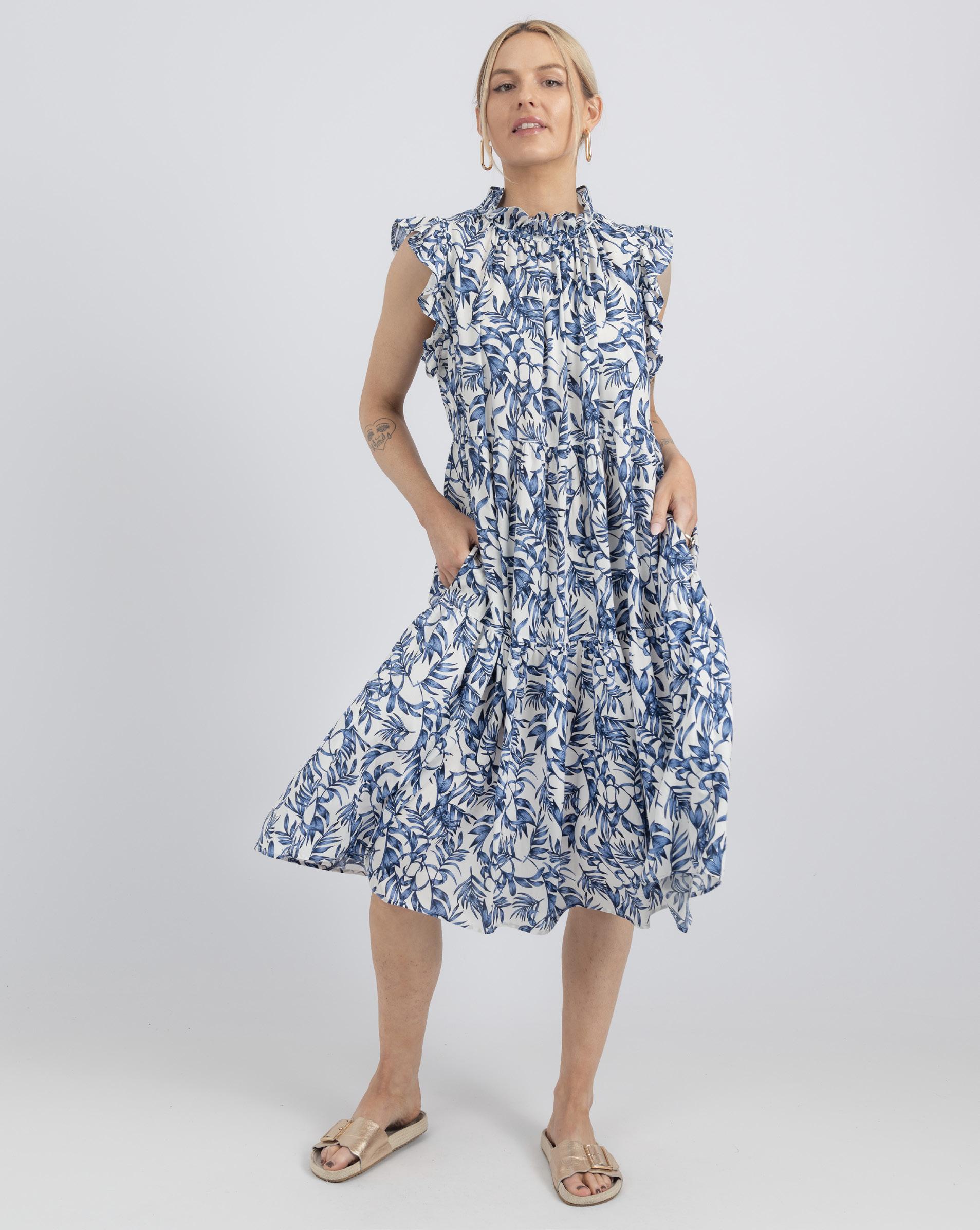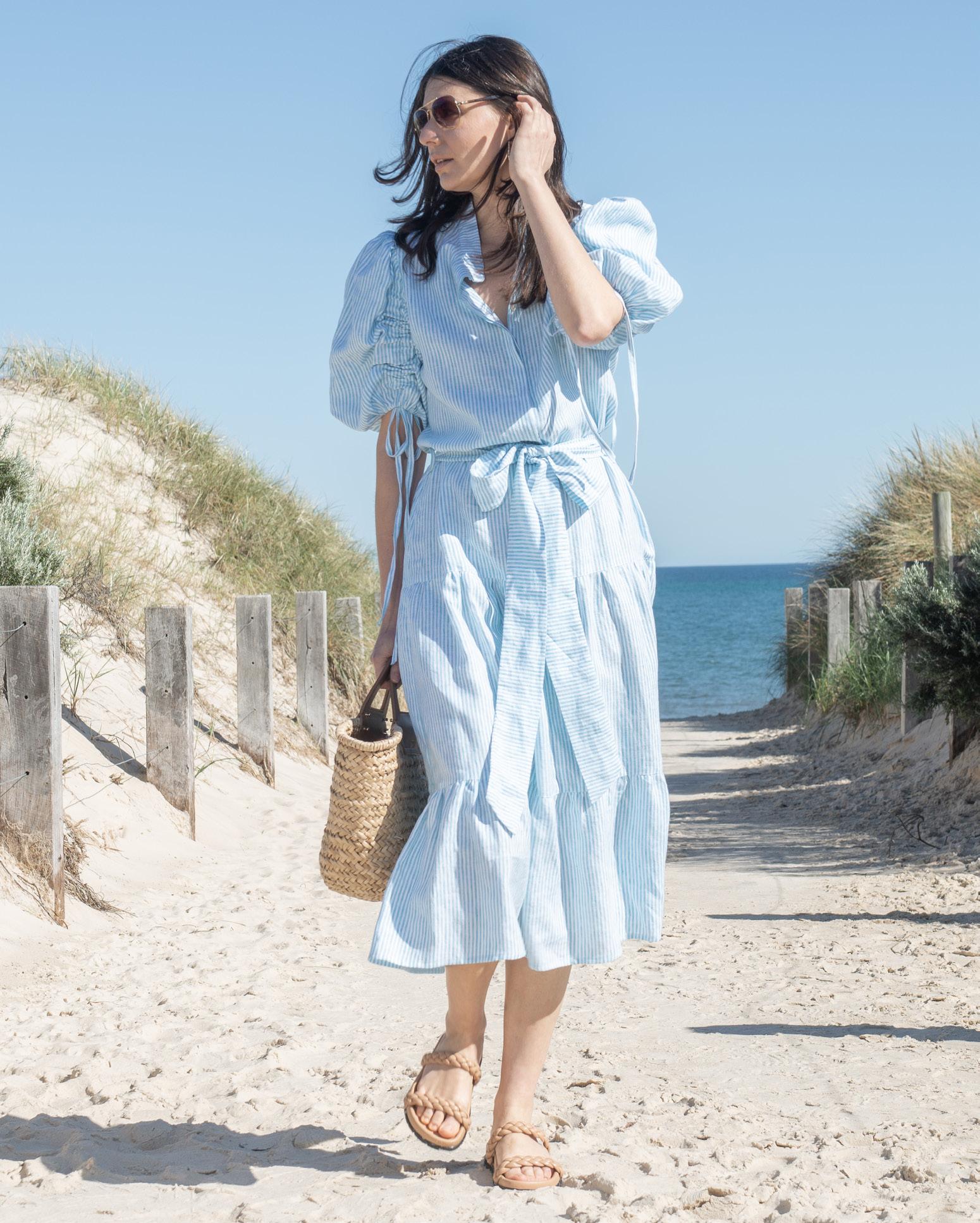 THIS PAGE Maxi Tie Dress Yellow Blue Stripe, $329
