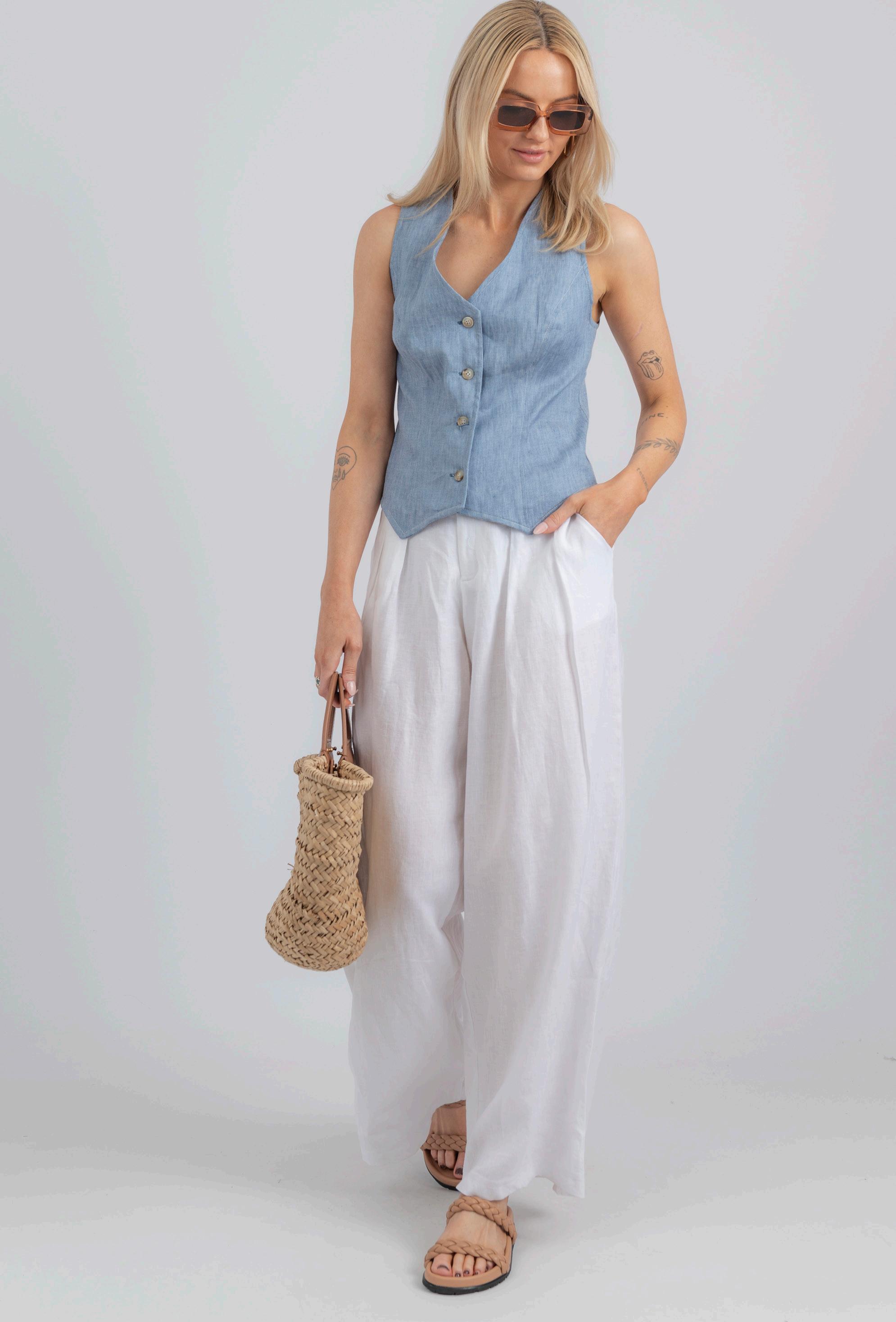 Linen Waistcoat Rust Stripe, $399 White, $249