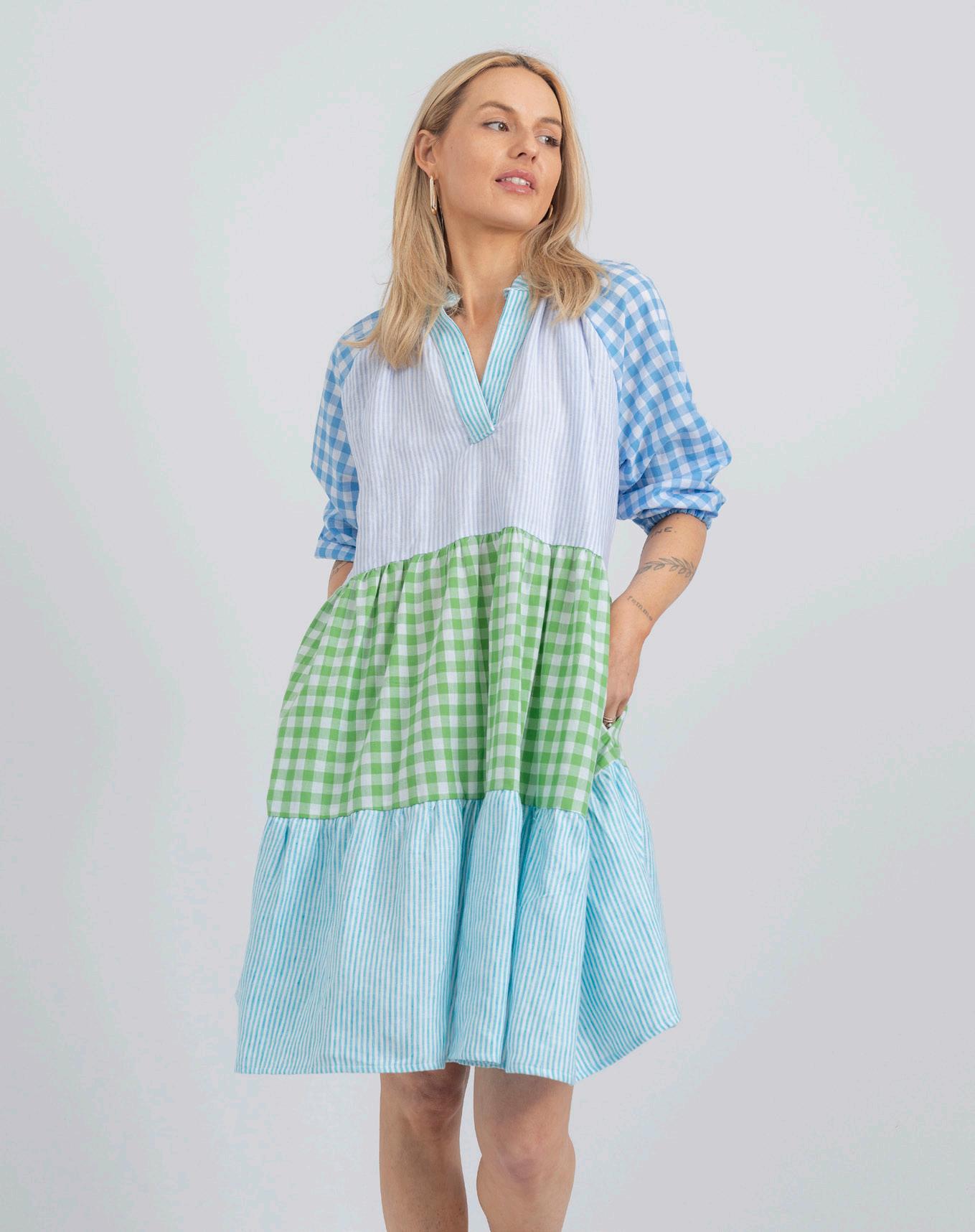 Raglan Sleeve Dress Blue Green Stripe, $299