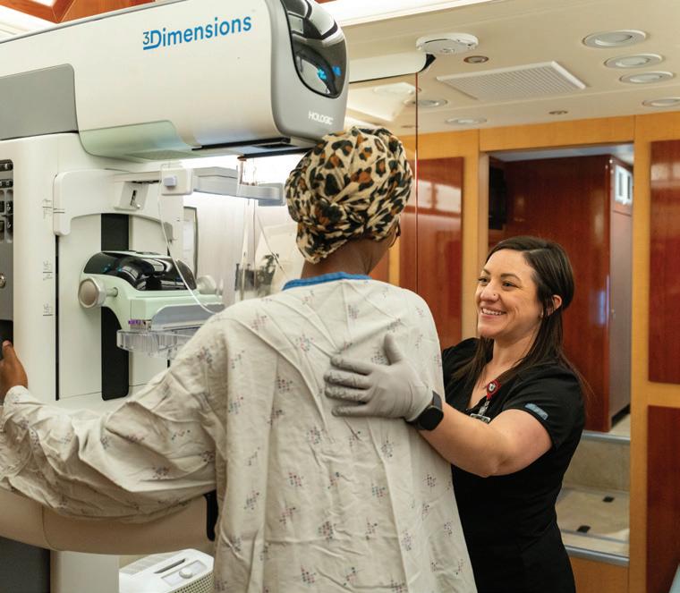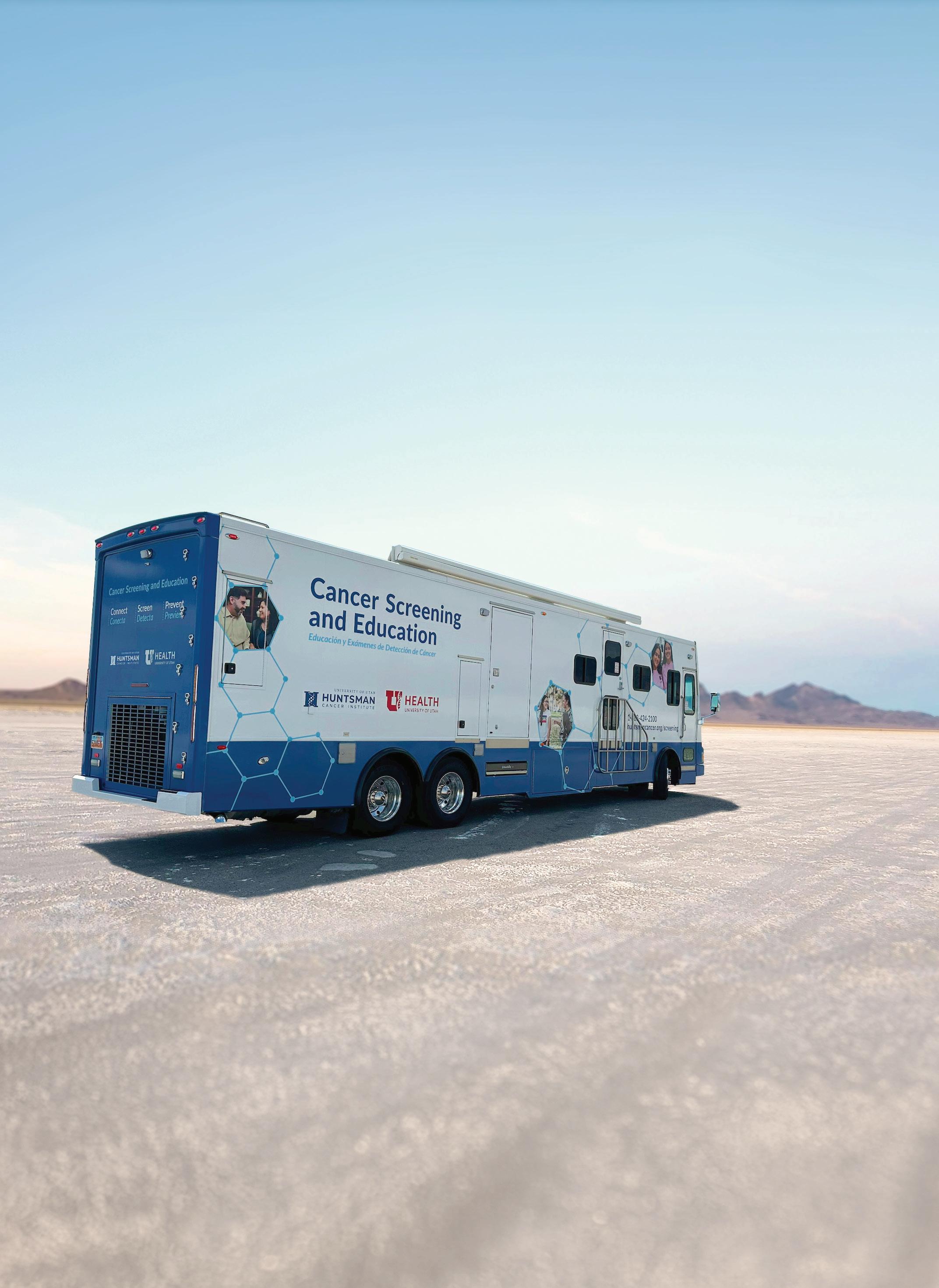 In 2019, Huntsman Cancer Institute launched a mobile mammography clinic, making state-of-theart mammograms accessible for all Utah residents, even those in our most distant, rural areas and underserved urban communities. This program is possible thanks to partnership with local groups like nursing homes, religious organizations, and regional clinics. For people who are low-income, uninsured, and underinsured, cost is less of a roadblock thanks to a Utah Department of Health voucher program, which helps pay for nearly half of all mobile clinic visits.