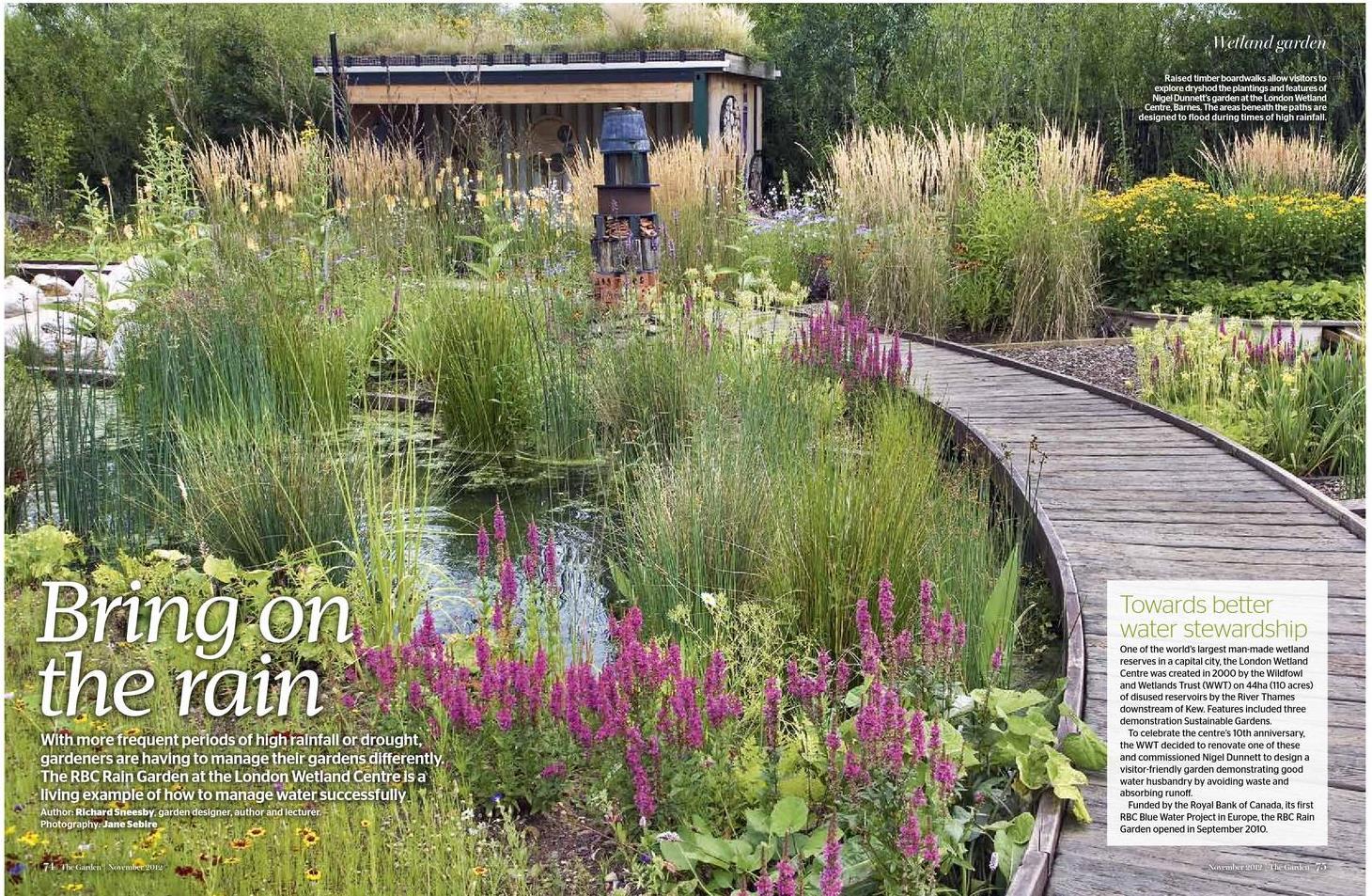 The RBC Rain Garden at the London Wetland Centre is a living example of how to manage water successfully. The designer, Nigel Dunnett of the University of Sheffield, approached the challenge using his extensive knowledge, making this garden one of the most interesting to be built in the UK for some years.