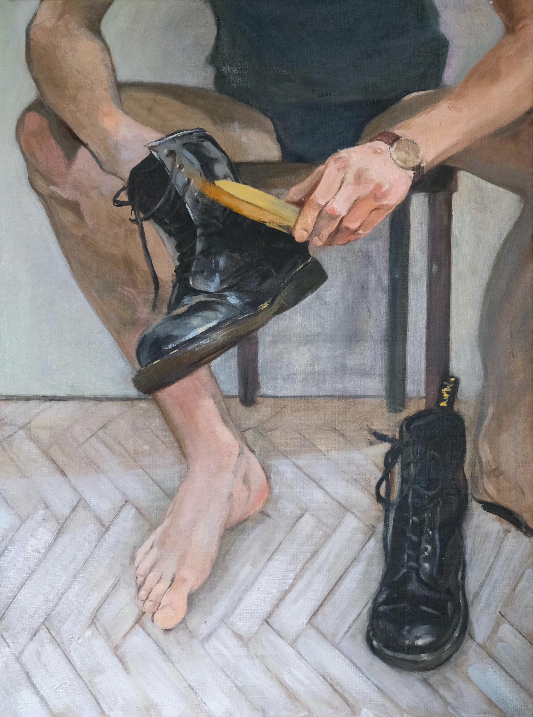 Maria Gulczyńska, Pastujący buty, 80 x 60 cm, olej na płótnie, 2022