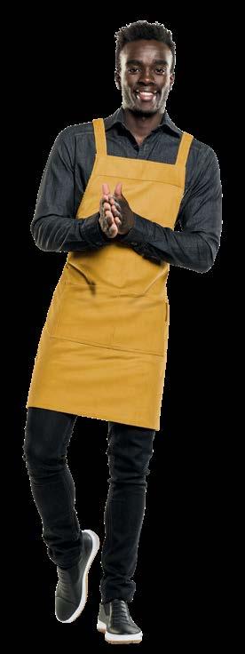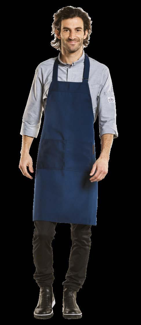 Authentiek, lichtgewicht en tijdloos. Van bistro, foodtruck tot trendy bar, de Leathercollectie voelt zich overal thuis. De innovatieve combinatie rundleer en polyester maakt de leren schorten en sloven licht en minder kwetsbaar voor vlekken. Alle banden zijn op maat te verstellen. De ‘raw edge - single stitch’ afwerking geeft de collectie de herkenbare, stoere uitstraling.