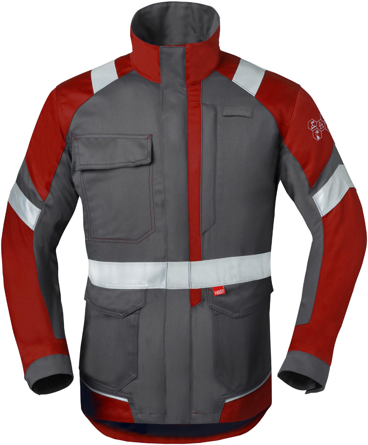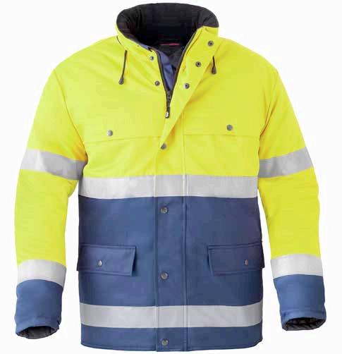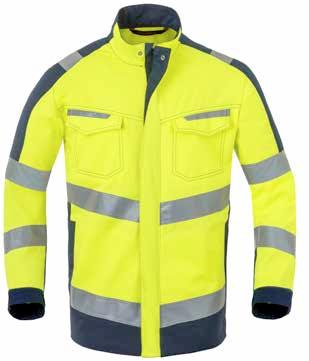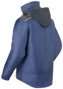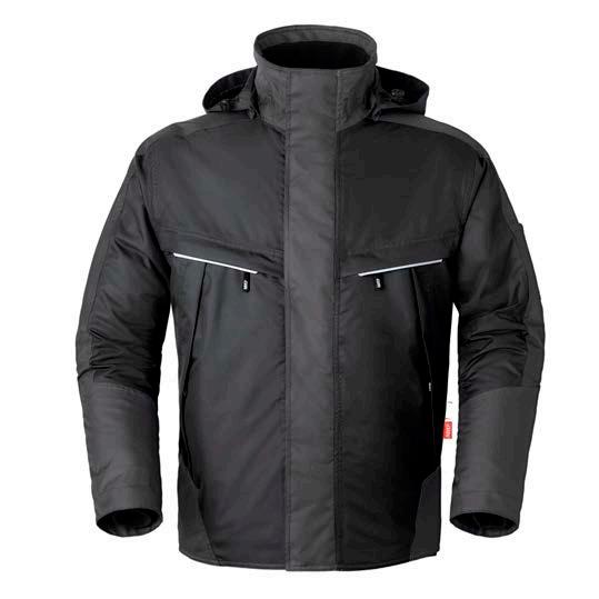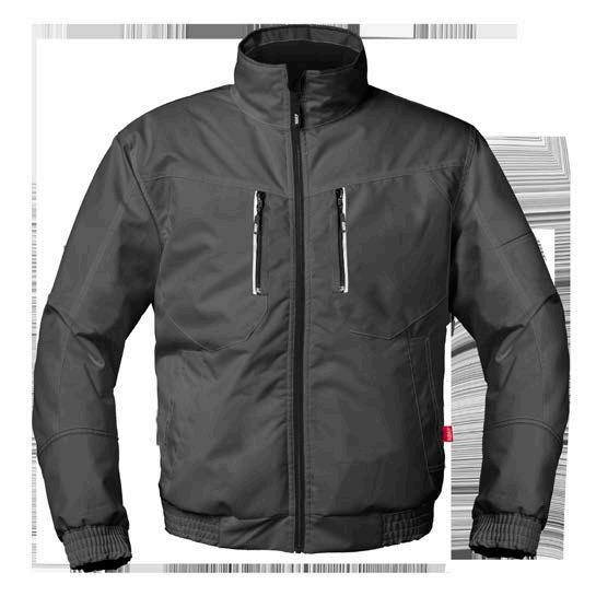 Omschrijving: ritssluiting, 2 ingezette zijzakken, 2 schuine borstzakken met rits waarvan 1 met GSMzakje, binnenzak met rits, mouwzakje met rits, elastiek in taille, manchetten met elastische band Kwaliteit: D001274 - 67%/33% polyester/katoen + DWR, 240 gr/m²