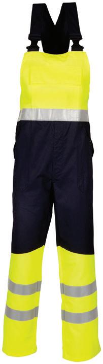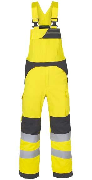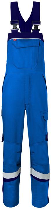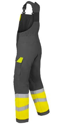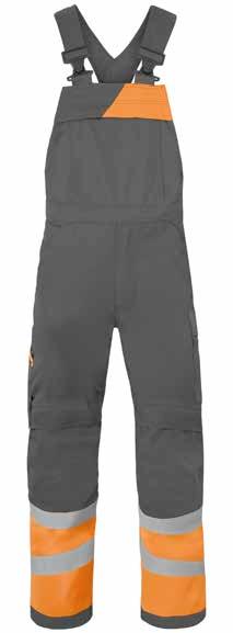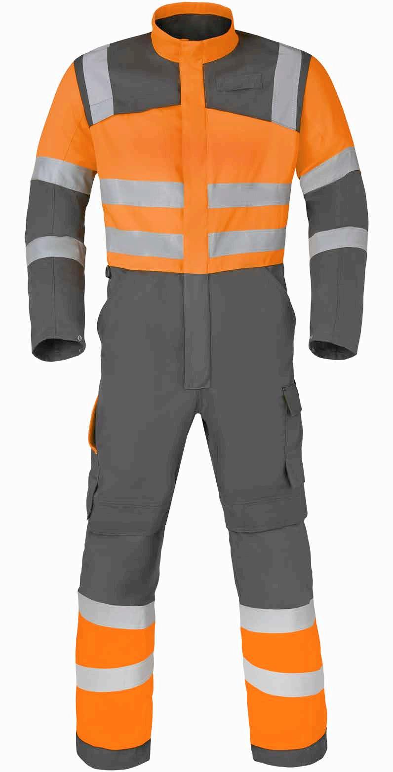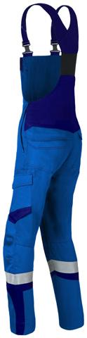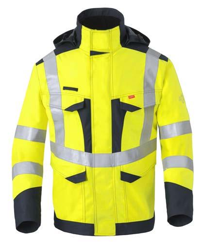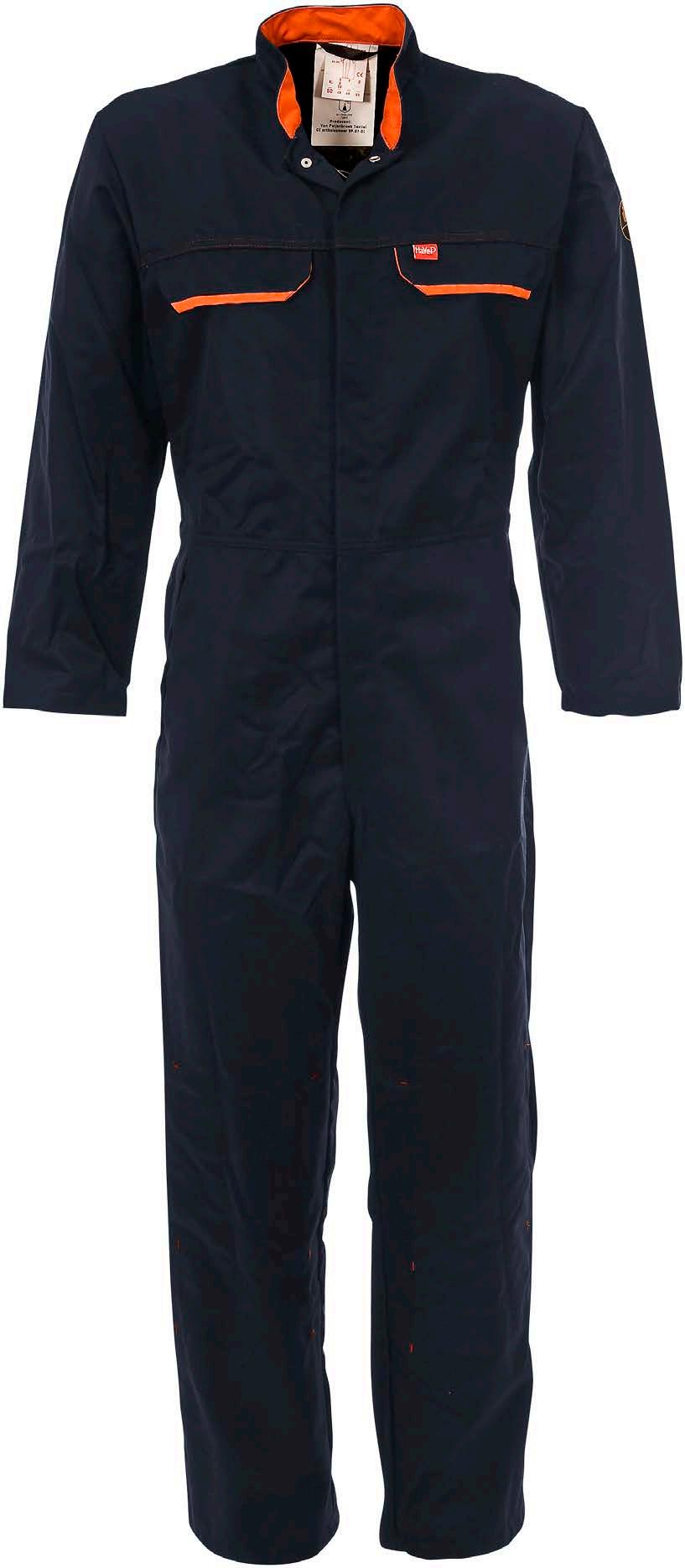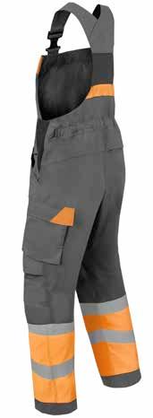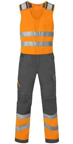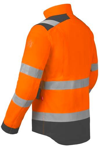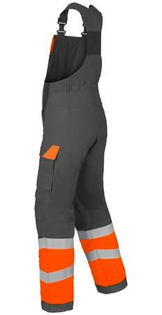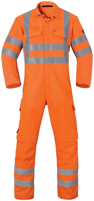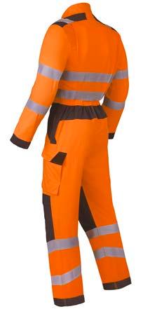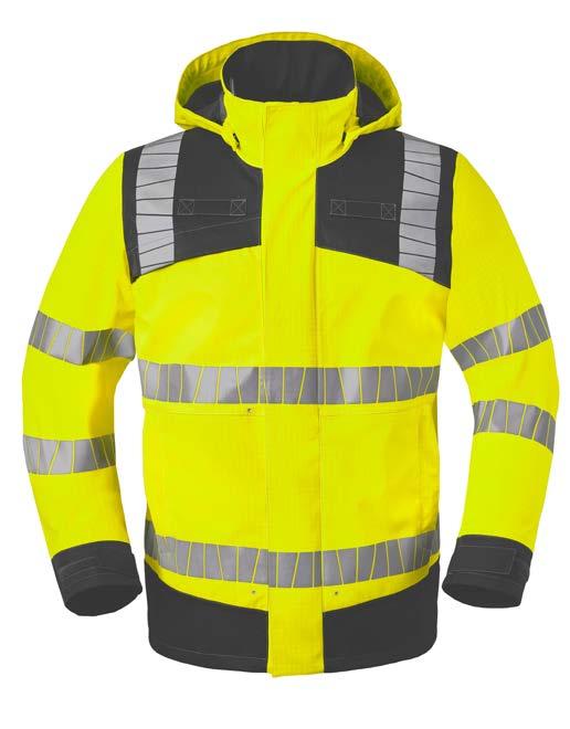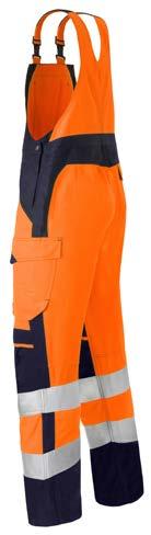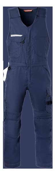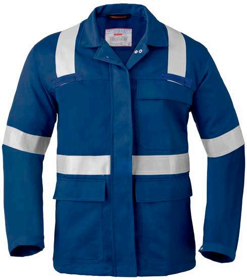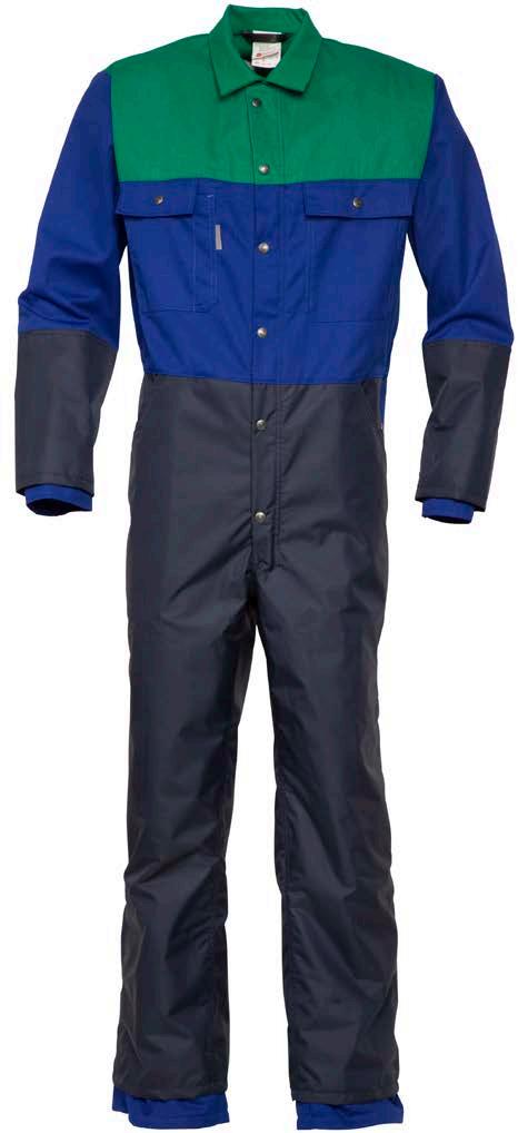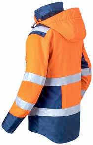Omschrijving: verdekte 2-weg kunststof ritssluiting met verdekte drukknopen, 2 zijzakken, 2 intasten, 2 borstzakken met klep, 2 achterzakken, duimstokzak, elastiek in rug, capuchon, reflectieband, windvangers, pijpen verstelbaar d.m.v. klittenband, kunststof rits in zijbenen, waterdichte schouders en voorbeen