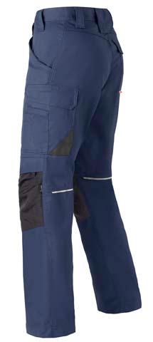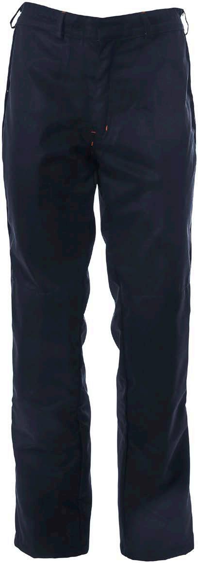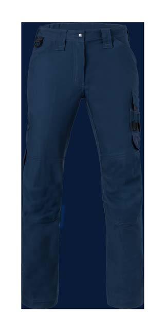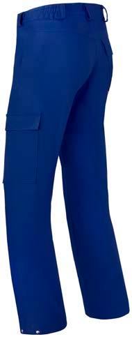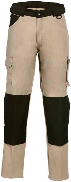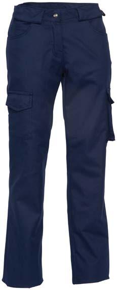 Omschrijving: verdekte ritssluiting, 2 ingezette zijzakken, 2 achterzakken waarvan 1 met knoop, duimstokzak, elastiek in rug Kwaliteit: D001033 - 65%/35% katoen/polyester, 2/1 keperbinding, 290 gr/m²
