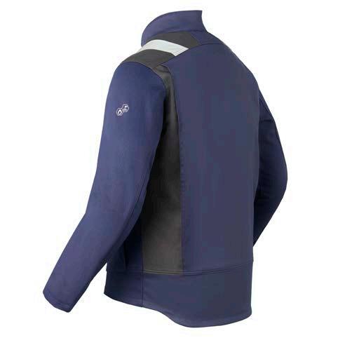 Omschrijving: verdekte drukknoopsluiting, 2 voorzakken, borstzak, binnenzak, GSM-zakje, pennenzakje op mouw, tailleband op rug, rugplooien voor extra bewegingsvrijheid