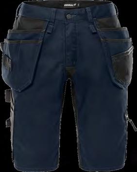 Korte broek met 4-way stretchmateriaal / Dijbeenpanelen en achterzijde van duurzaam 4-way ripstop stretchmateriaal / Delen van 4-way stretch op de bovenbenen / Stretch ribmateriaal in de taille / 2 met CORDURA® verstevigde loshangende zakken, 1 met 3 kleinere zakken en gereedschapslussen, 1 met extra zak / D-ring onder loshangende zak / 2 voorzakken / Dubbel verstevigde kruisnaad / Hamerlus / 2 achterzakken met rits / 2 beenzakken met rits en ventilerende delen aan de binnenzijde / Duimstokzak met gereedschapszak, pennenzak, knoop en lus voor werkmes / Beenzak met telefoonzak / Elastische band / OEKO-TEX® gecertificeerd.