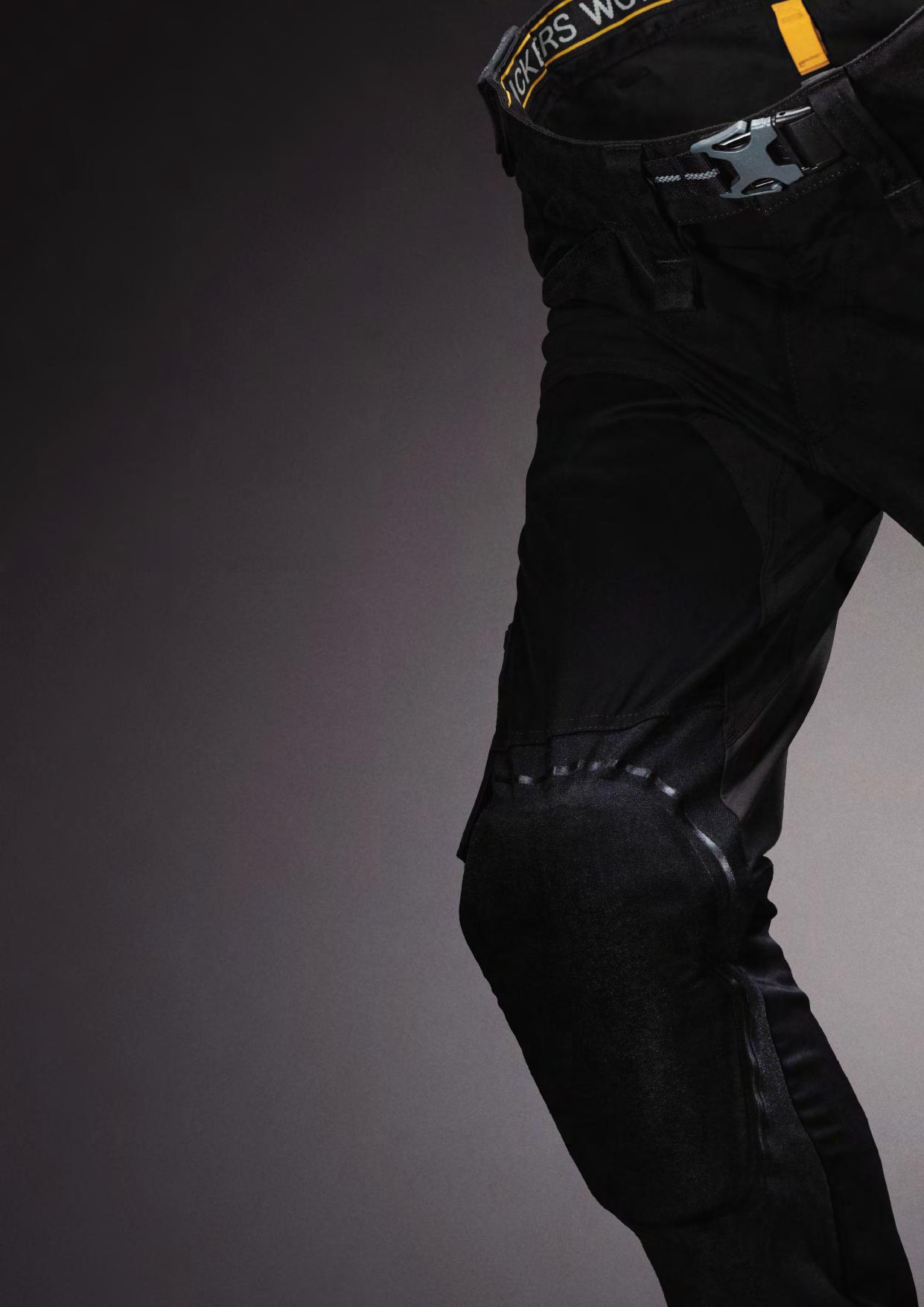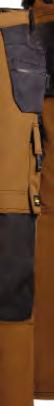 Met CORDURA® versterkte KneeGuard™ zakken bieden extra bescherming en levensduur. De versterkte holsterzakken, duimstokzak en cargozakken zorgen voor veilige opbergmogelijkheden waarbij je altijd gemakkelijk bij je gereedschap en spullen kunt. Slim fit broekspijpen.