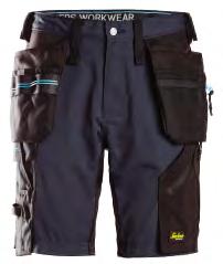 Multifunctionele korte dames werkbroek met holsterzakken, ontworpen voor dagelijkse werkzaamheden in de bouw in warme omstandigheden. De korte broek is gemaakt van een 2-way stretch stof en wordt geleverd met 4-way stretch panelen aan achterkant en in kruis gebied voor optimaal comfort en bewegingsvrijheid.