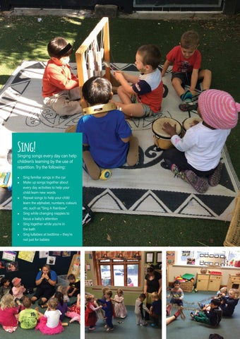 Sing familiar songs in the car Make up songs together about every day activities to help your child learn new words Repeat songs to help your child learn the alphabet, numbers, colours etc, such as âSing A Rainbowâ Sing while changing nappies to focus a babyâs attention Sing together while youâre in the bath Sing lullabies at bedtime â theyâre not just for babies