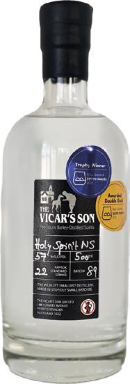 Akin to a religious experience, this intensely flavoursome gin from award-winning (and tiny) Auckland distillery The Vicar’s Son is a must-try. It won the Trophy for Best Overall Contemporary/Navy Strength Gin at the NZ Spirits Awards 2022. (Pg 79)